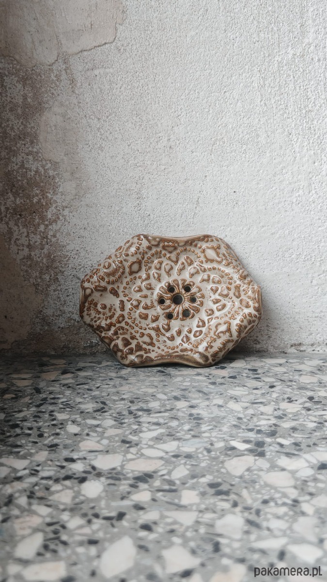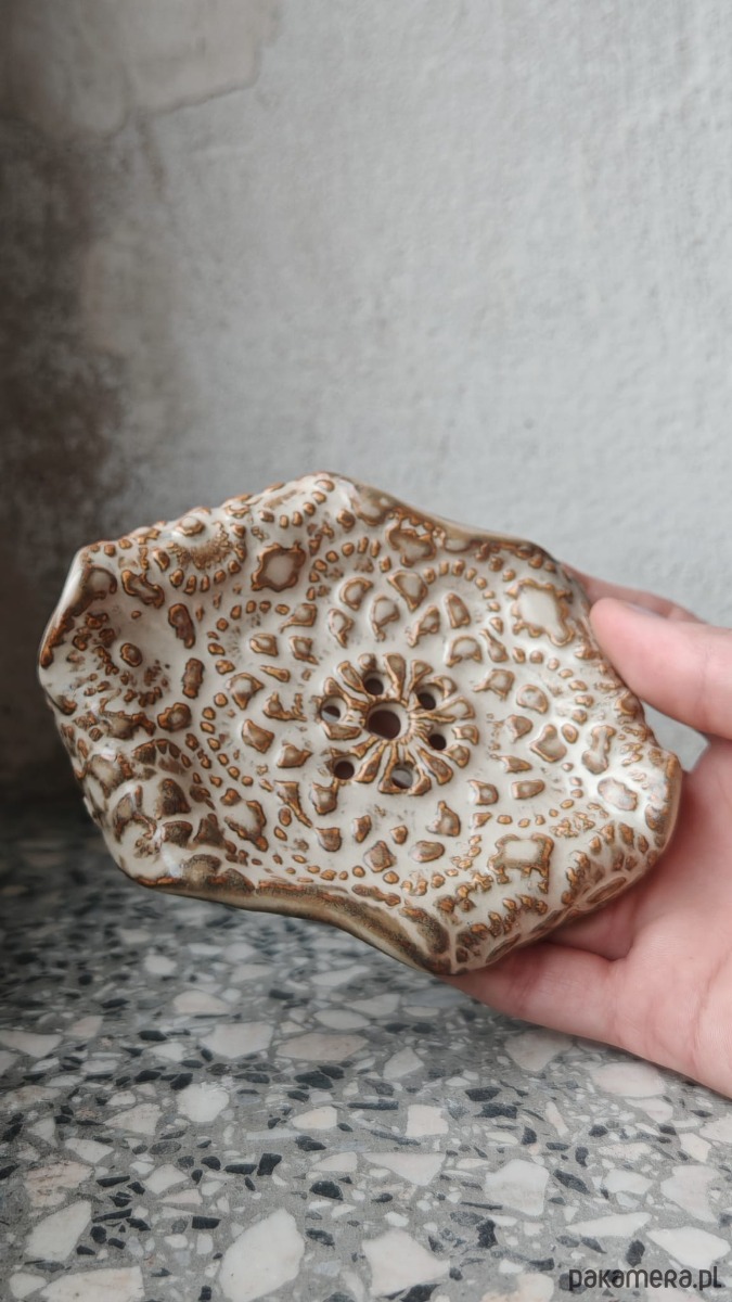 Ręcznie wykonana ceramiczna mydelniczka, długość 11cm, szerokość 8cm.