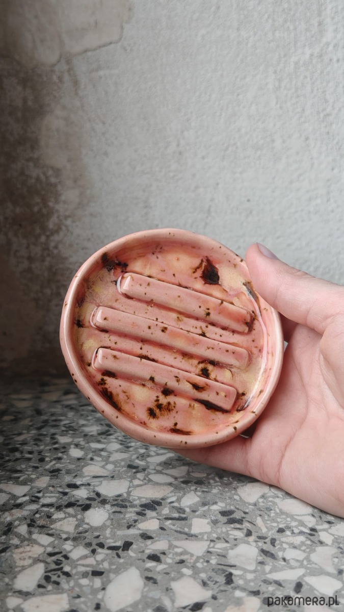 Ręcznie wykonana ceramiczna mydelniczka, średnica 9cm.