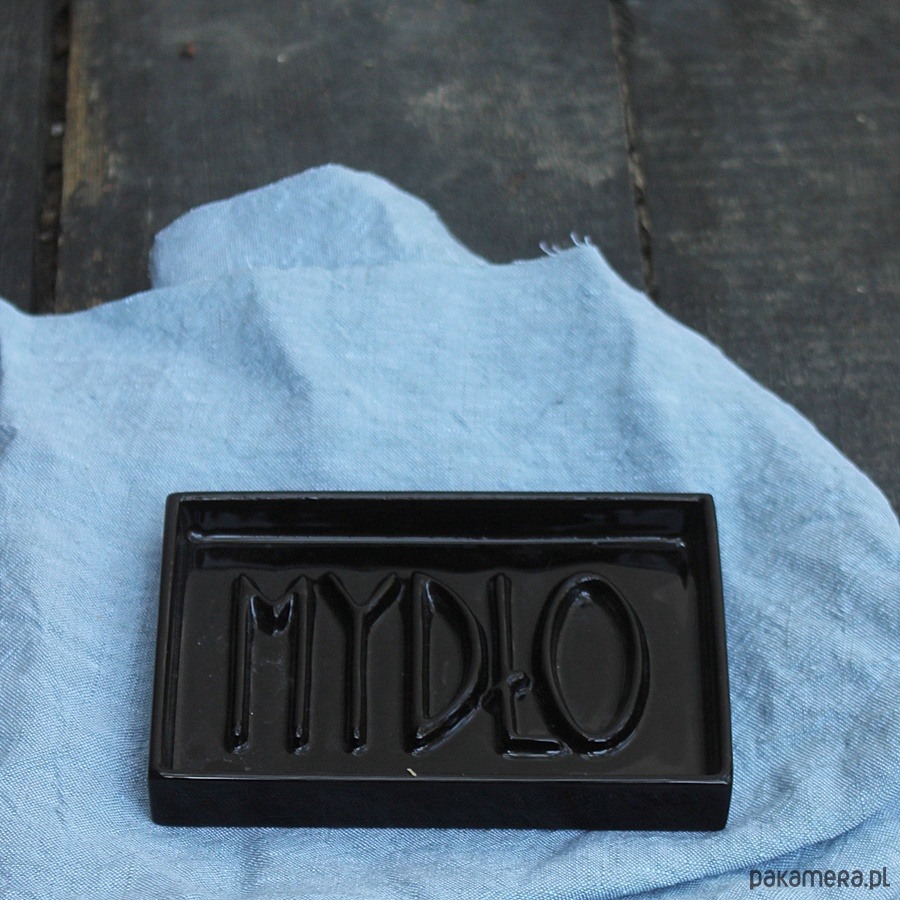 Mydelniczka ceramiczna z napisem MYDŁO czarna