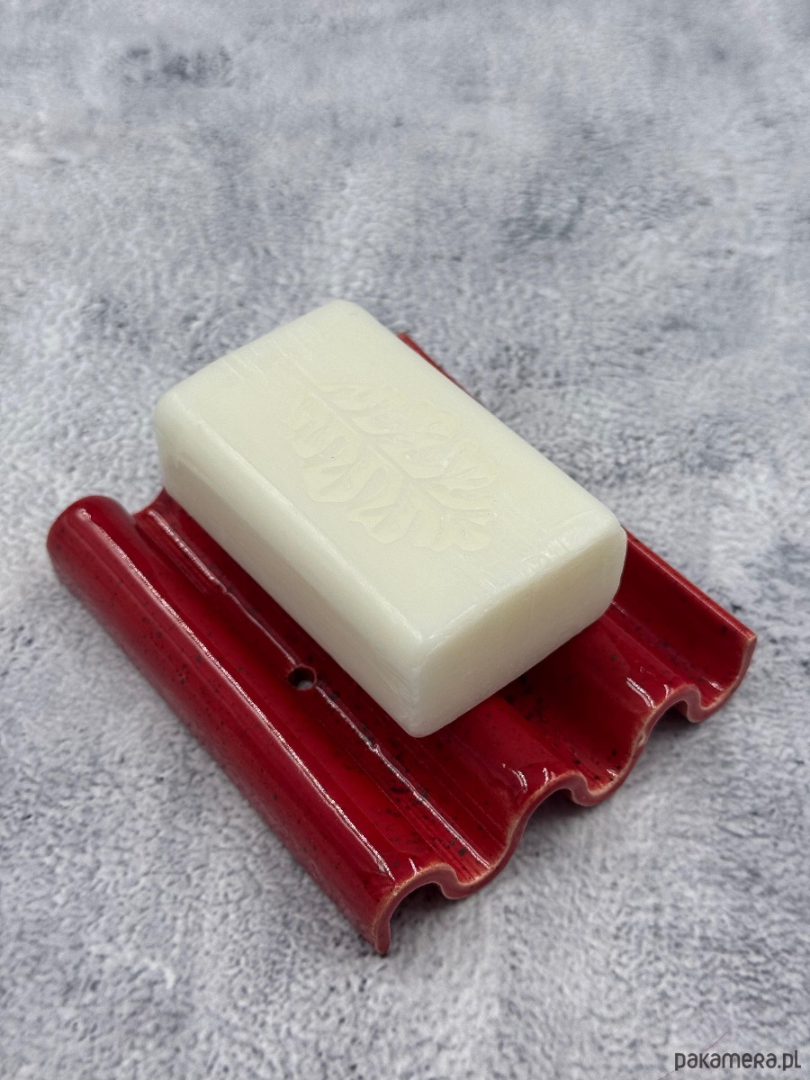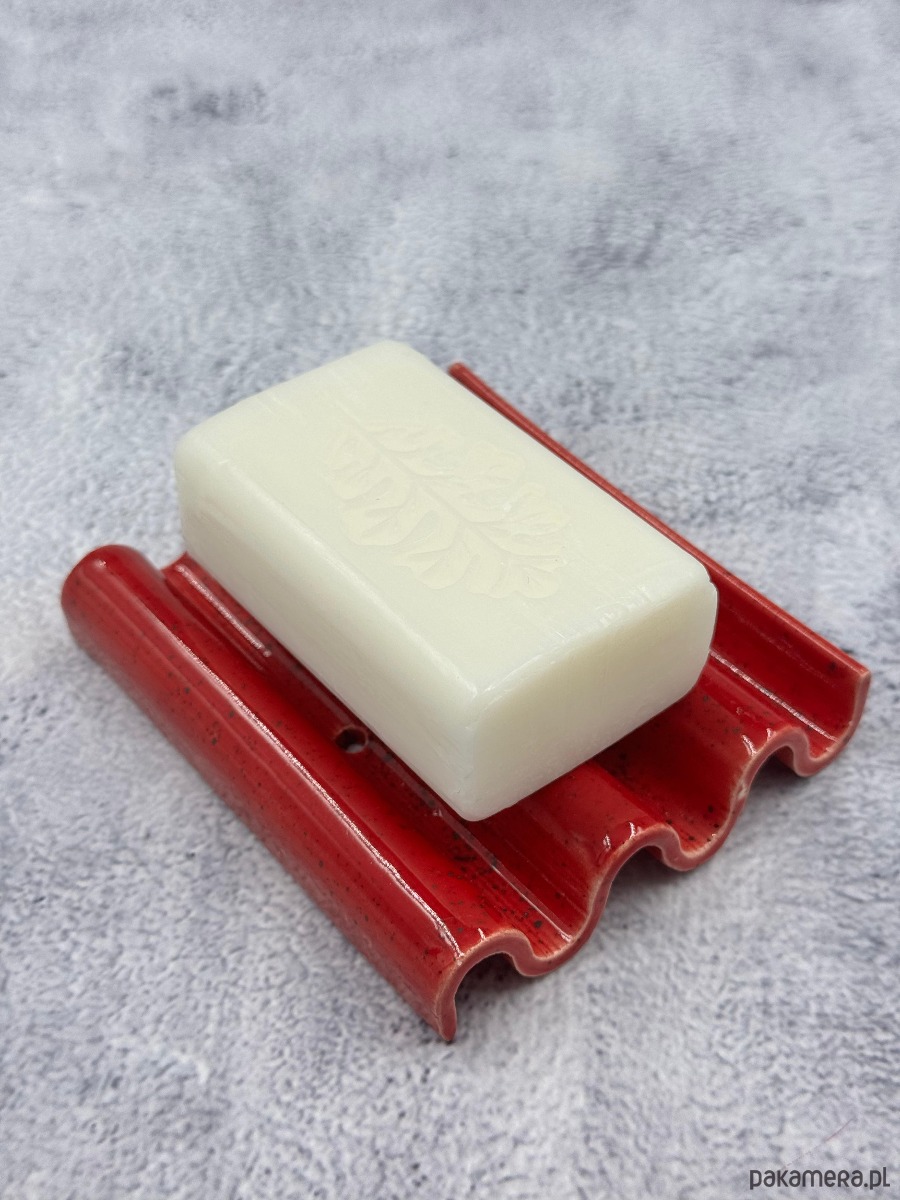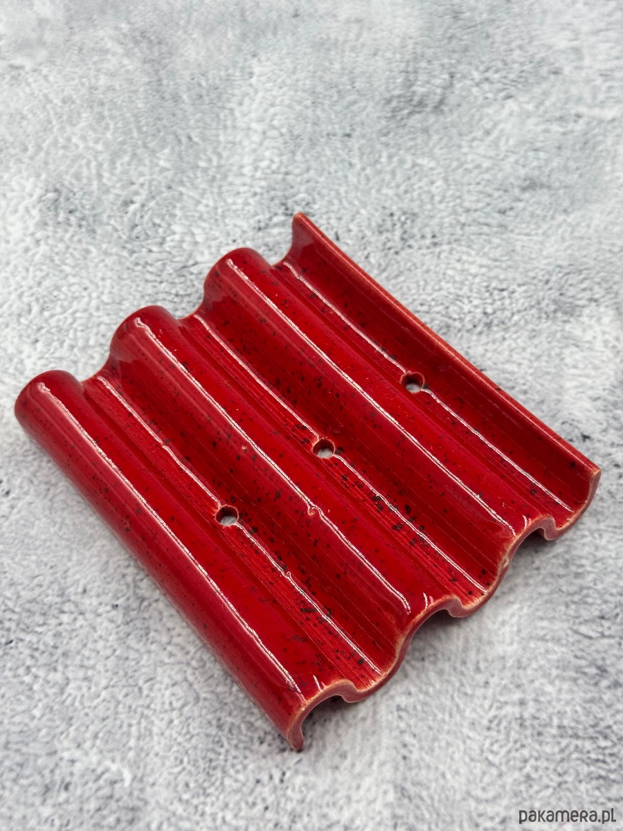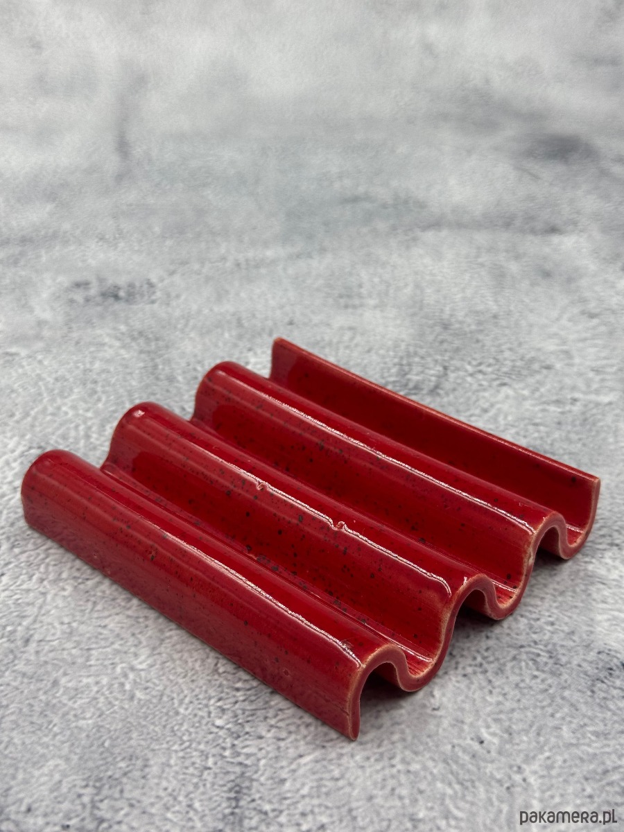 Elegancka, ręcznie robiona mydelniczka w intensywnym czerwonym kolorze to połączenie nowoczesnego designu i funkcjonalności. Wykonana z wysokiej jakości ceramiki, wyróżnia się subtelnym, ale wyrazistym wyglądem, który doda charakteru każdej łazience. Jej gładka, falująca forma i intensywny, głęboki odcień czerwieni z drobnymi czarnymi kropeczkami sprawiają, że staje się nie tylko praktycznym akcesorium, ale również stylową ozdobą. Idealna dla osób szukających unikalnych, ręcznie wykonanych przedmiotów, które wprowadzą do wnętrza elegancję i nowoczesność. Wymiary 8,5 cm x 10 cm.