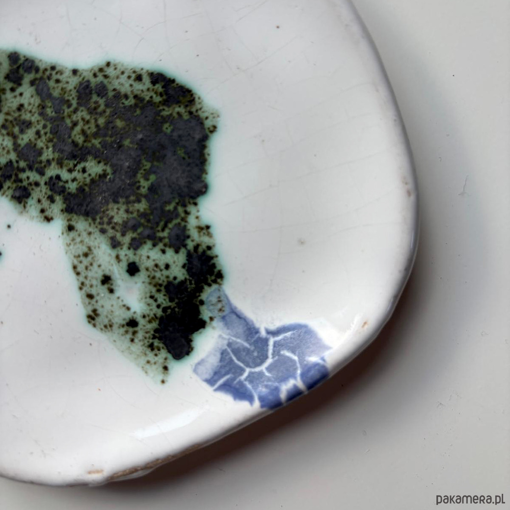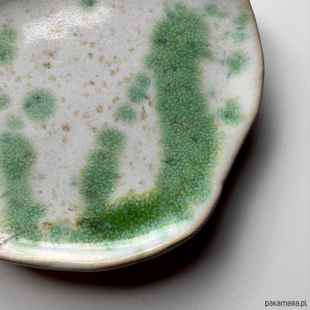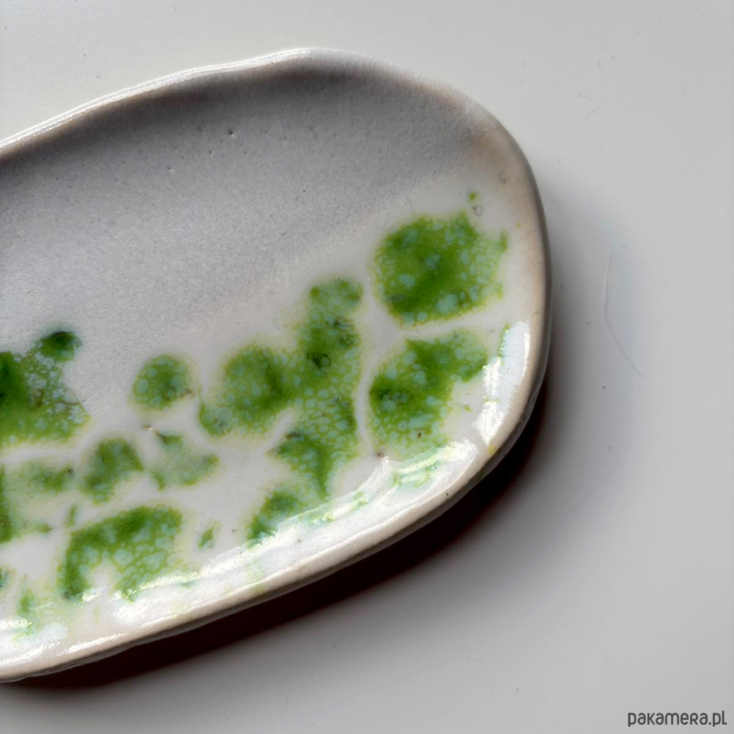 Mydelniczki wykonane z jasnej gliny pokryte kolorowym szkliwem.