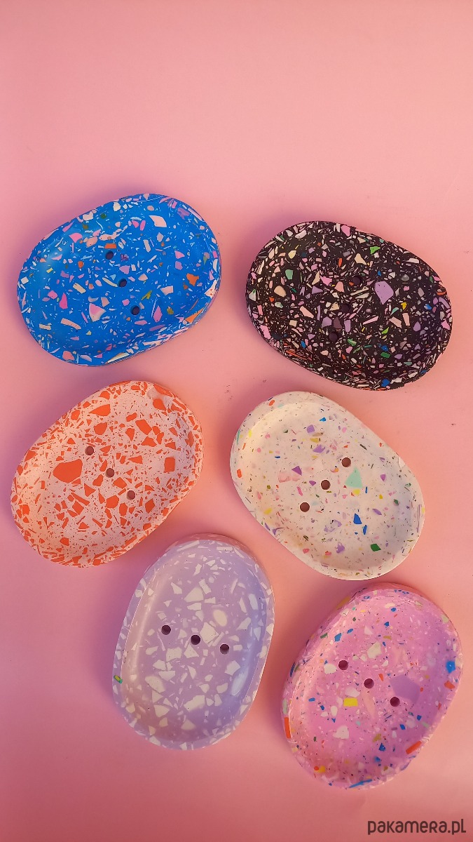 Mydelniczka terrazzo to idealne rozwiązanie do przechowywania mydła w sposób higieniczny. Otwory odprowadzające wodę sprawiają, że mydło nie rozpuszcza się, a powierzchnia pozostaje sucha i czysta. Dzięki solidnej konstrukcji, mydelniczka jest odporna na zarysowania i uszkodzenia, co zapewnia jej długotrwałe użytkowanie.