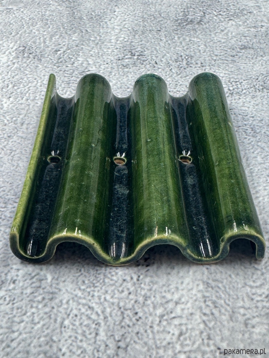 Elegancka, ręcznie robiona mydelniczka w kolorze butelkowej zieleni to połączenie nowoczesnego designu i funkcjonalności. Wykonana z wysokiej jakości ceramiki, wyróżnia się subtelnym, ale wyrazistym wyglądem, który doda charakteru każdej łazience. Jej gładka, falująca forma i intensywny, zielony kolor sprawiają, że staje się nie tylko praktycznym akcesorium, ale również stylową ozdobą. Idealna dla osób szukających unikalnych, ręcznie wykonanych przedmiotów, które wprowadzą do wnętrza elegancję i nowoczesność. Wymiary 8,5 cm x 10 cm.