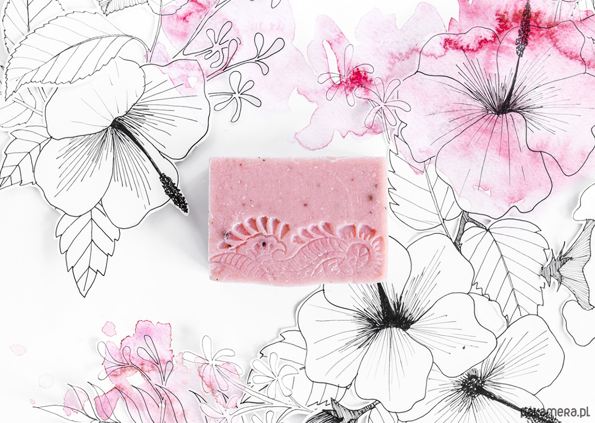 Naturalne, ręcznie wytwarzane w niewielkich partiach wegańskie mydło z łagodzącym wyciągiem z Hibiskusa i różową glinką francuską. Dokładnie, ale delikatnie myje pozostawiając skórę oczyszczoną i gładką. Odrobina różowego pigmentu mineralnego sprawia, że mamy w łazience prawdziwe różowe szaleństwo ;)