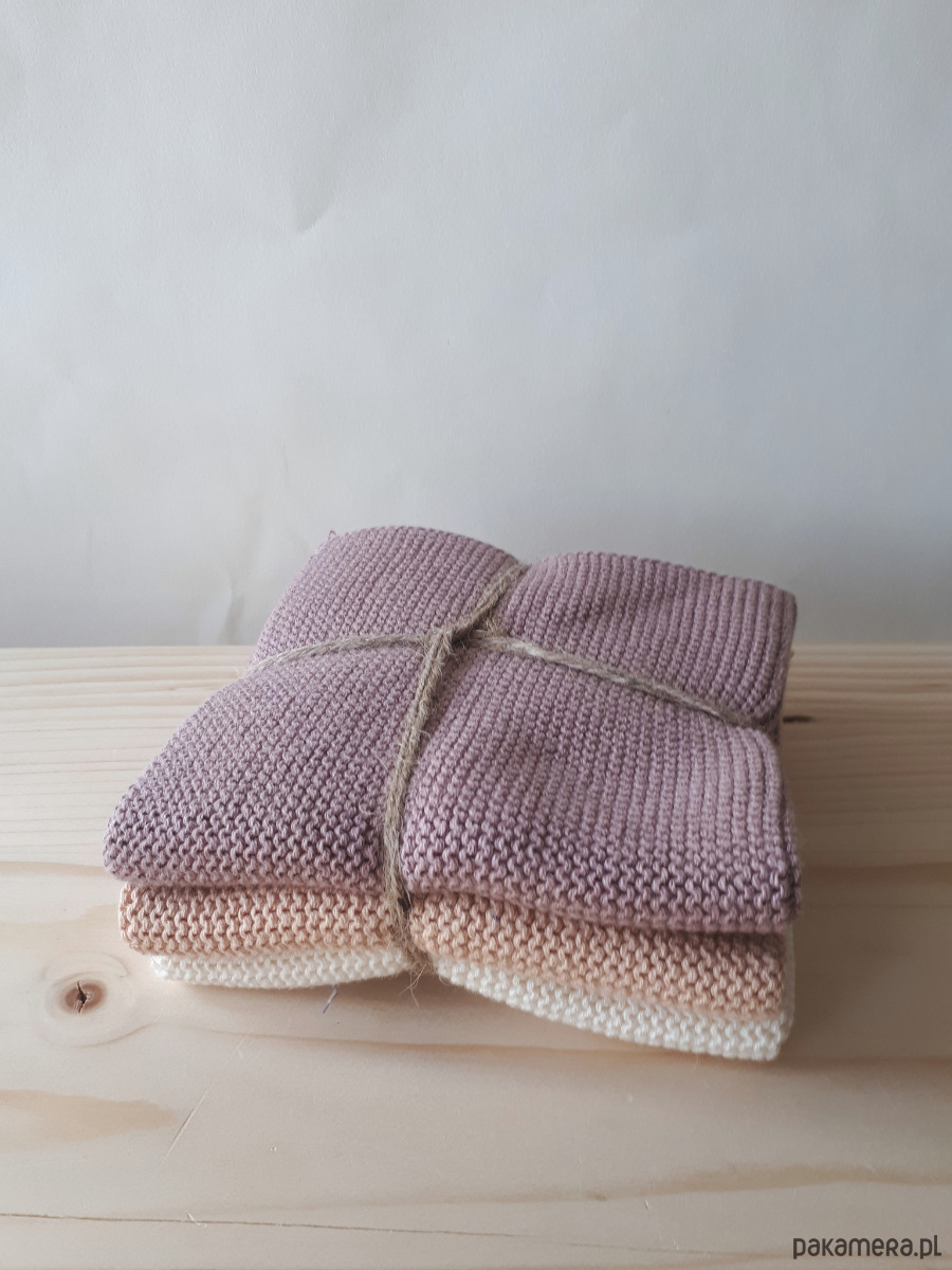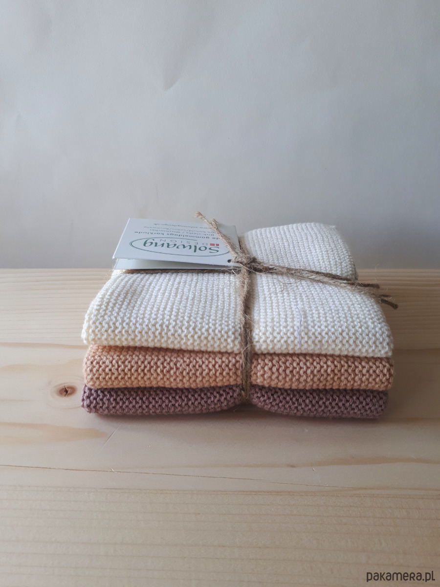 Zestaw 3 uniwersalnych myjek, tkanych z certyfikowanej bawełny.