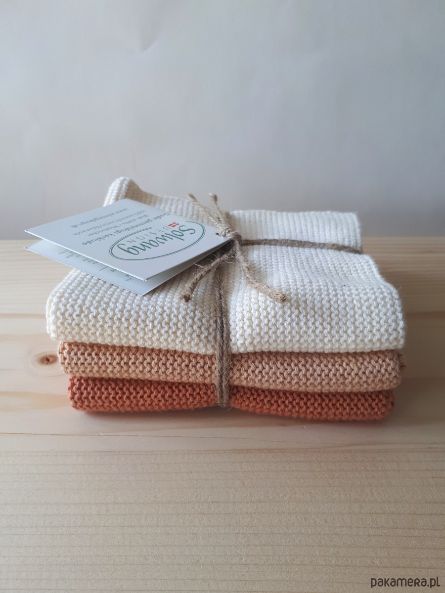 Zestaw 3 uniwersalnych myjek, tkanych z certyfikowanej bawełny.