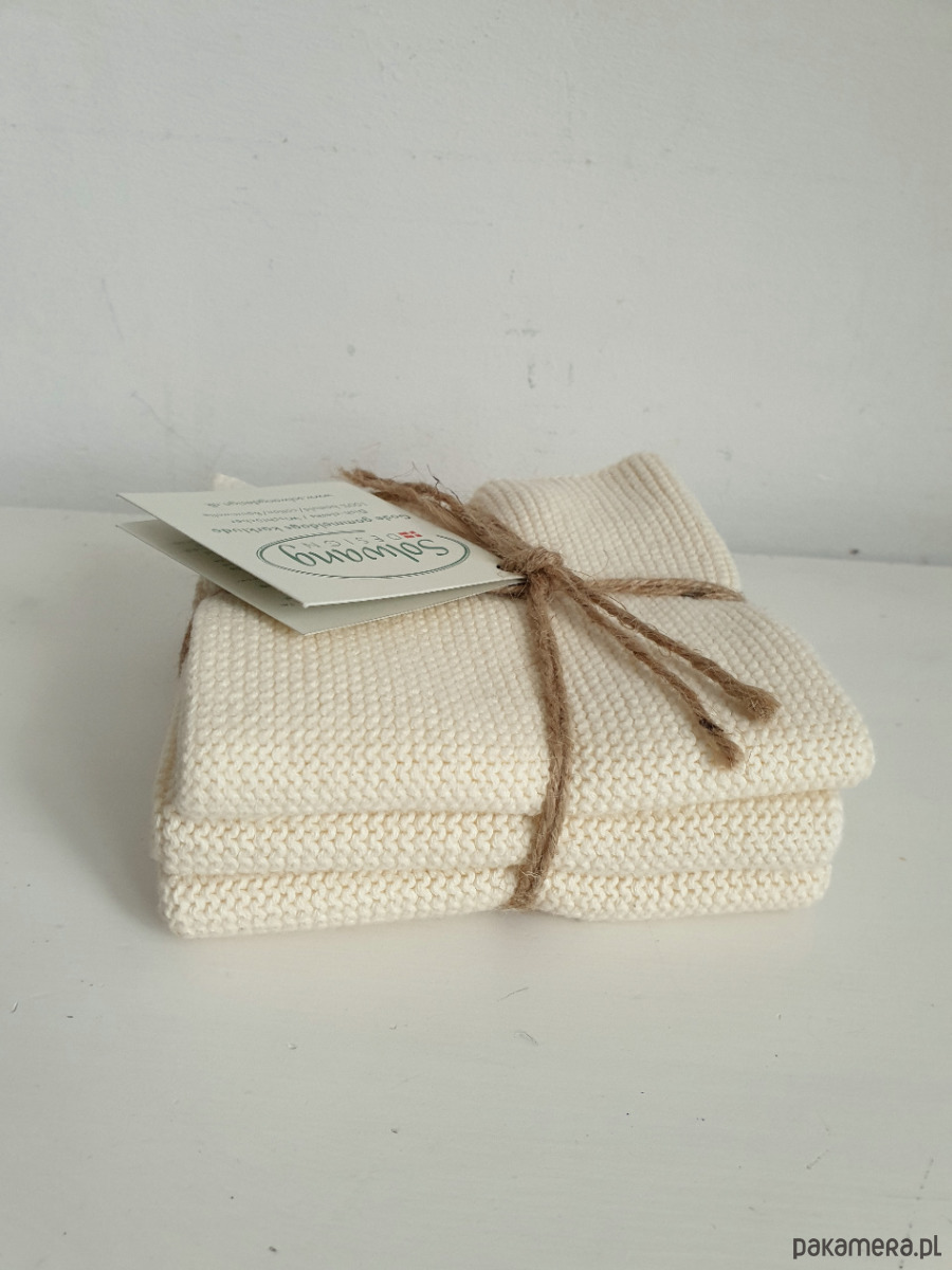 Zestaw 3 uniwersalnych myjek, tkanych z certyfikowanej bawełny.