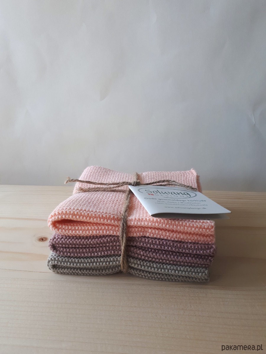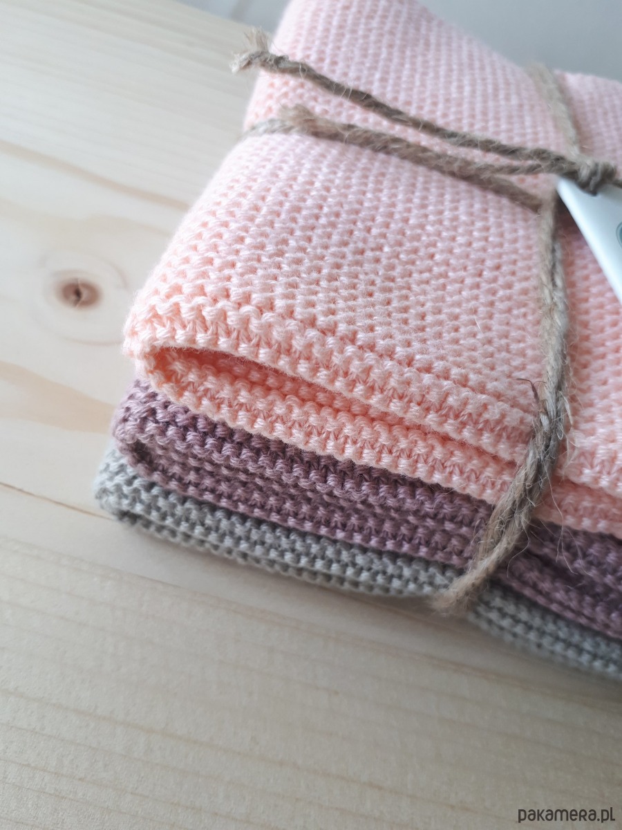 Zestaw 3 uniwersalnych myjek, tkanych z certyfikowanej bawełny.