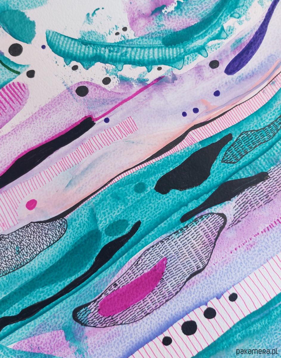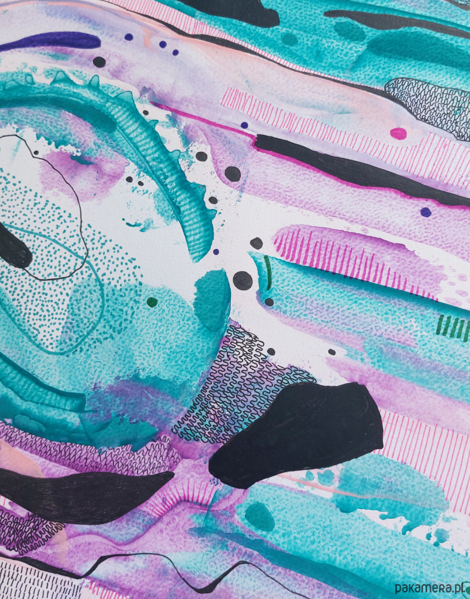 - namalowana farbami akrylowymi i pisakami na arkuszu papieru 300 g,
