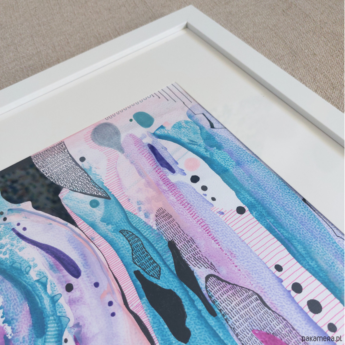 MYŚLI LEKKIE to cudna, subtelna abstrakcja, która dopełni każde wnętrze. Powstała latem w ciepły wieczór, jest pełna detalu i przenikających się kolorów. Świetnie sprawdzi się w pokoju dziecka, sypialni i każdej innej przestrzeni, której Mieszkańcy lubią lekkość i takie barwy. Sprzedawana jest w klasycznej ramie w kolorze białym z białym passepartout - będzie cieszyć oko i serce :)