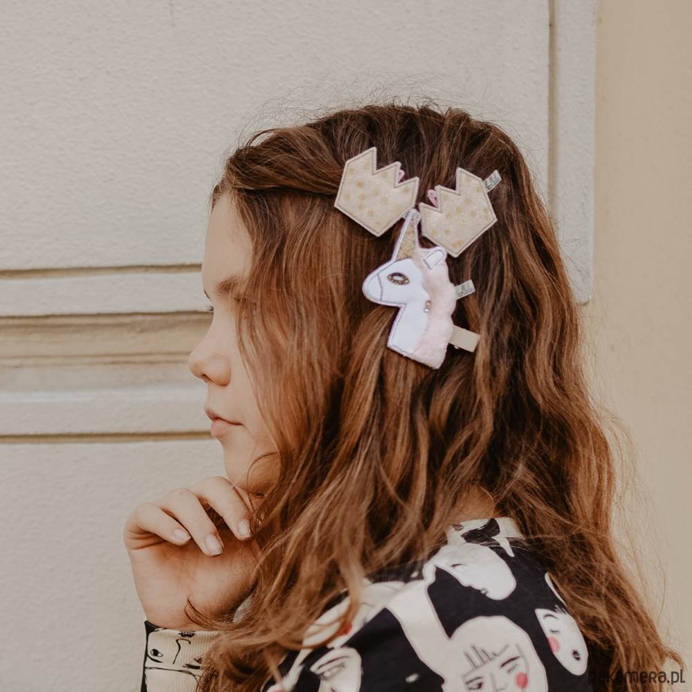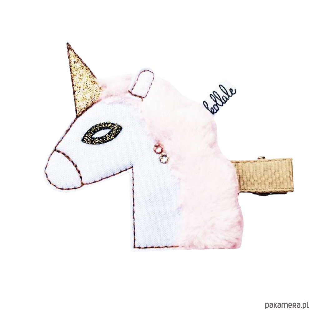 Przedstawiamy spinkę z jednorożcem, która jest świetnym dodatkiem do każdej stylizacji a klips oklejony tasiemką rypsową bardzo dobrze trzyma włosy
