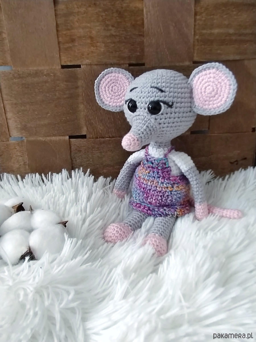 Szydełkowa myszka ze zdejmowaną sukienką to urocza zabawka dla każdego malucha.
