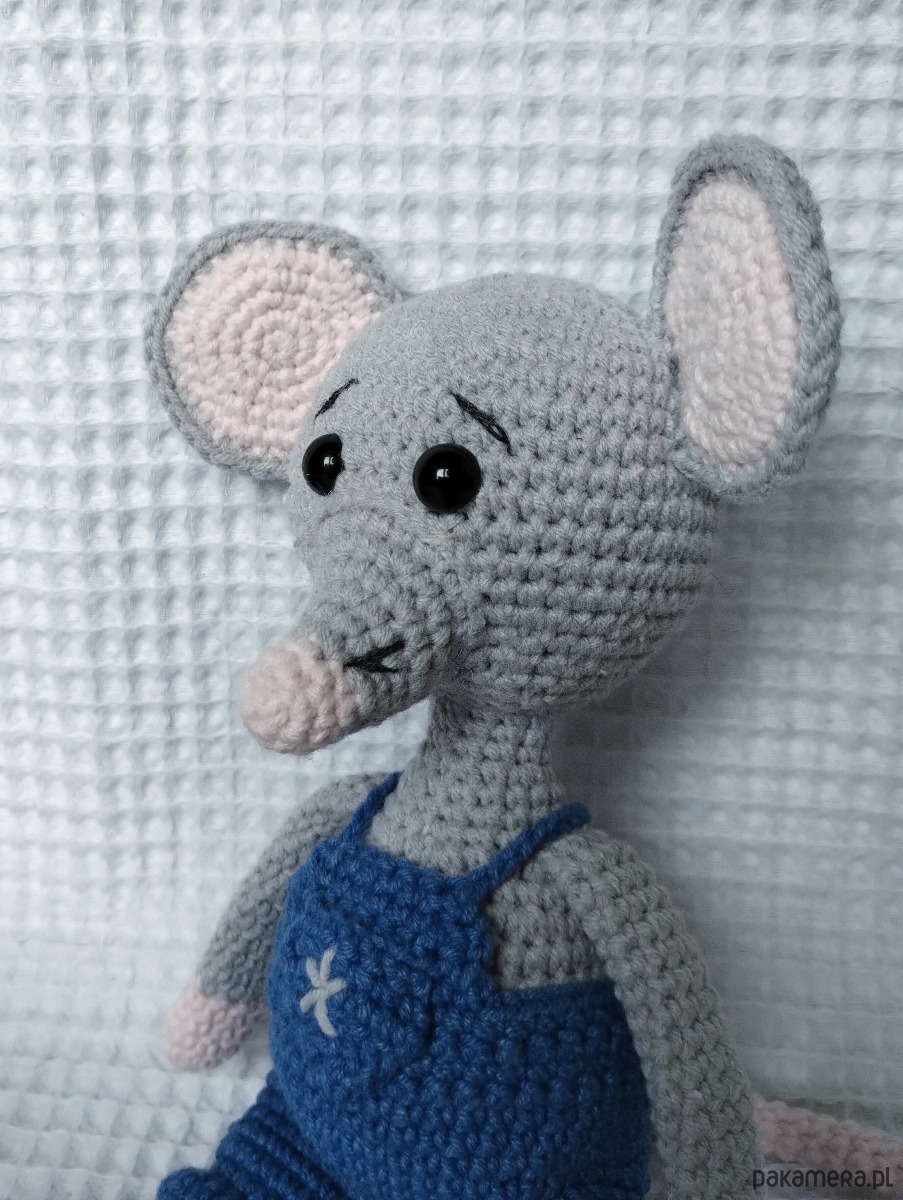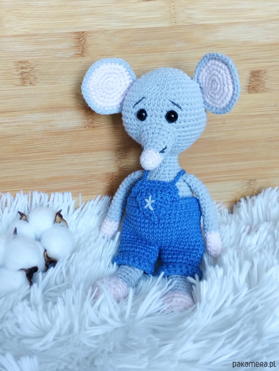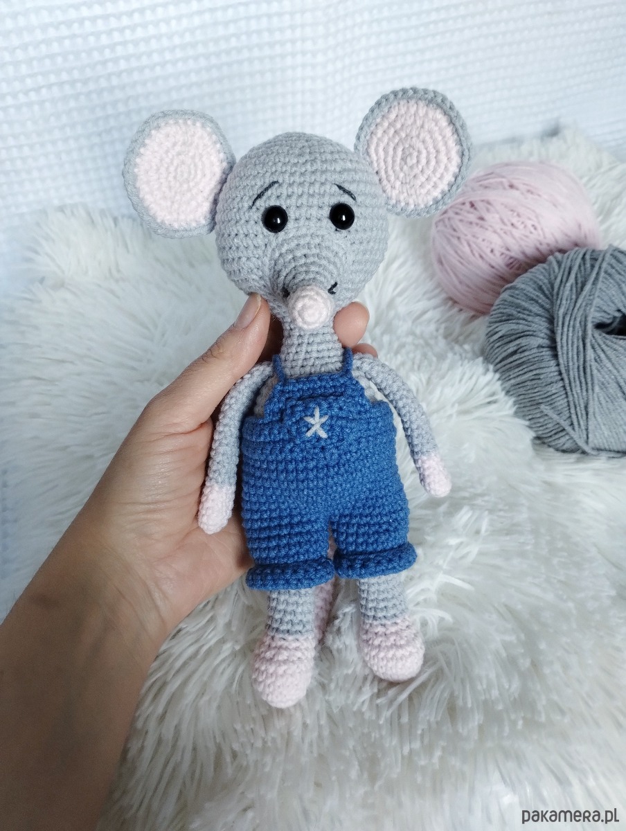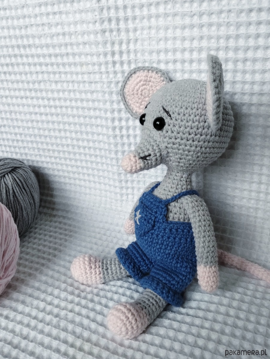 Szydełkowa myszka ze zdejmowanymi spodenkami to urocza zabawka dla każdego malucha.