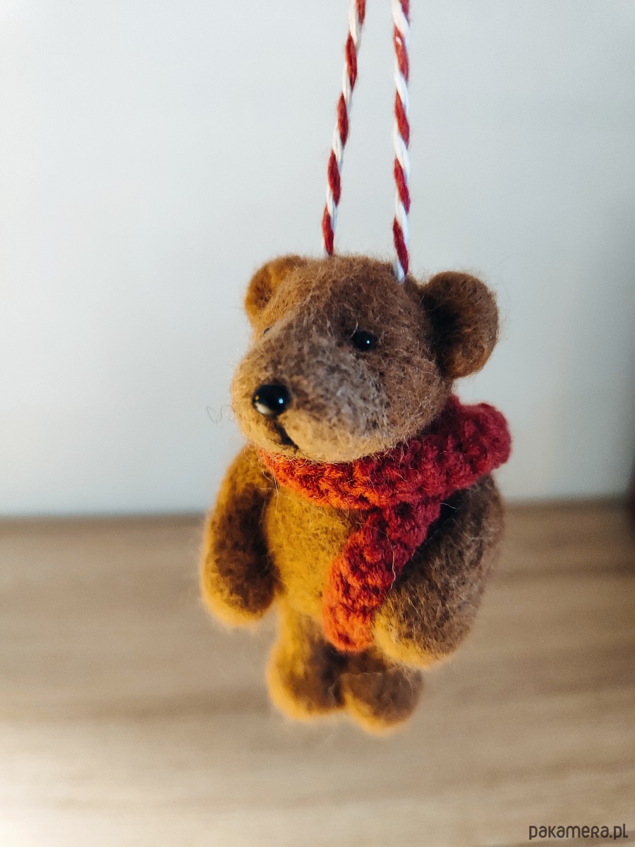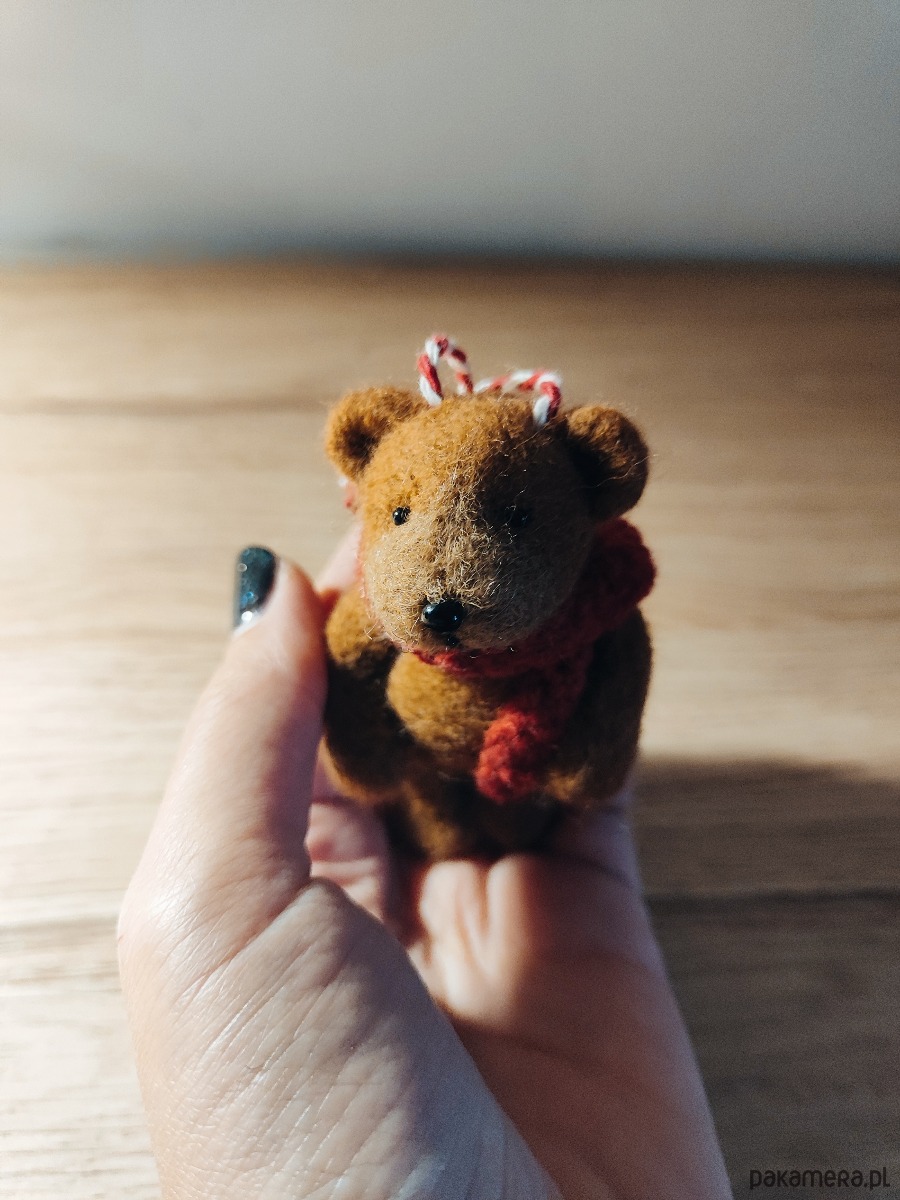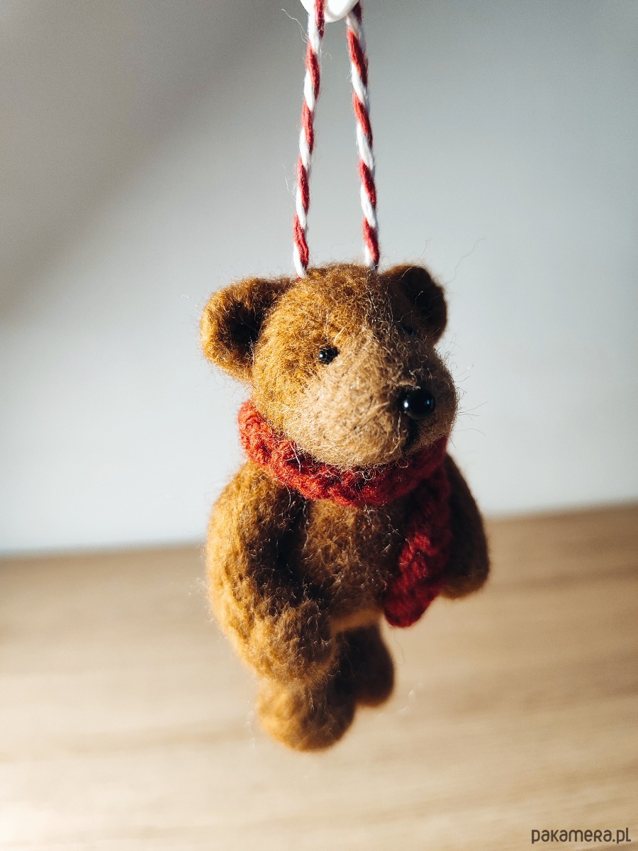 Myszka Fiszka -miś wełna filc bombka święta zawieszka