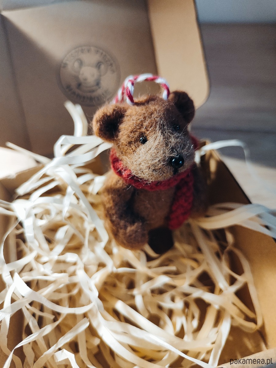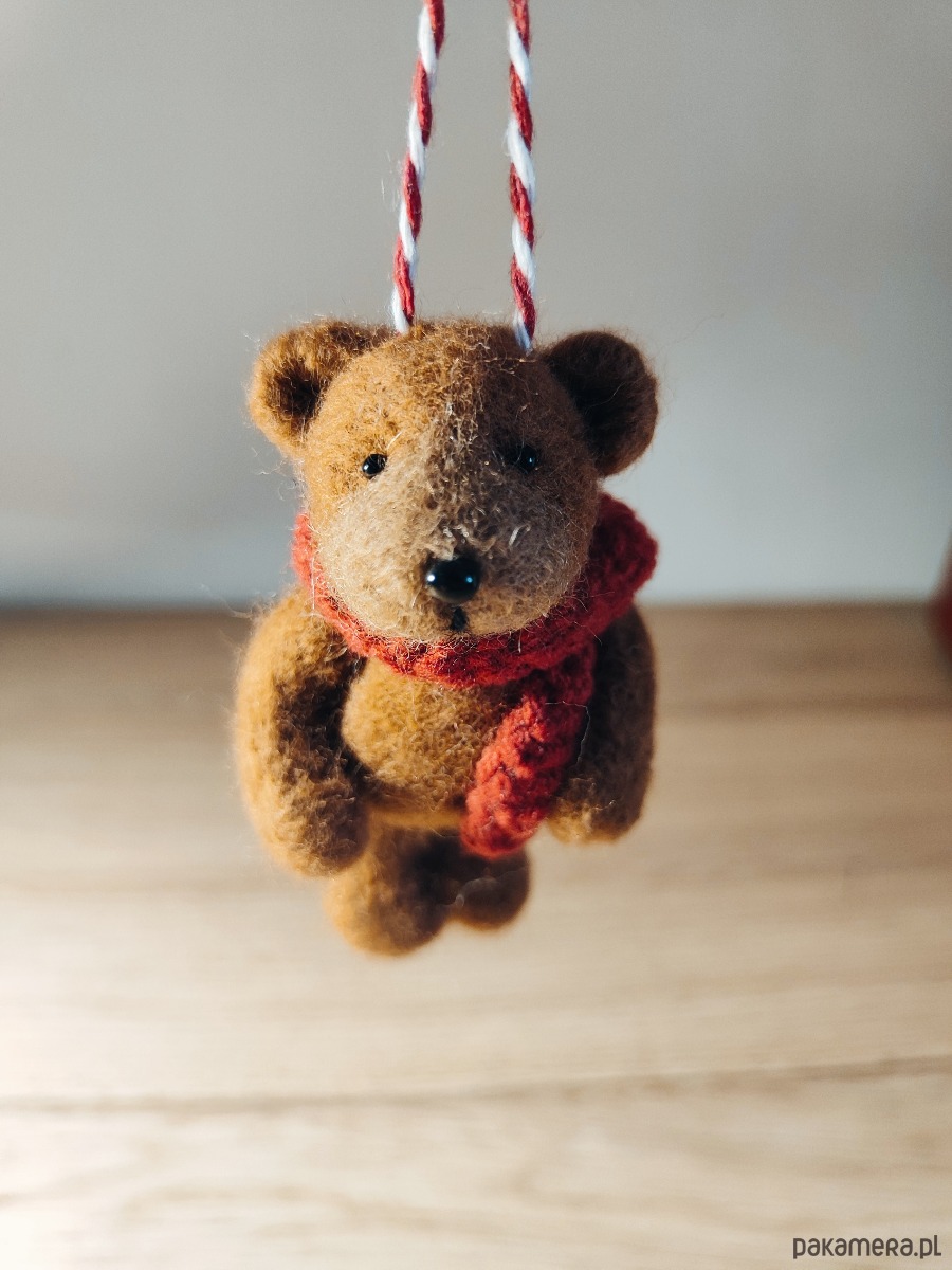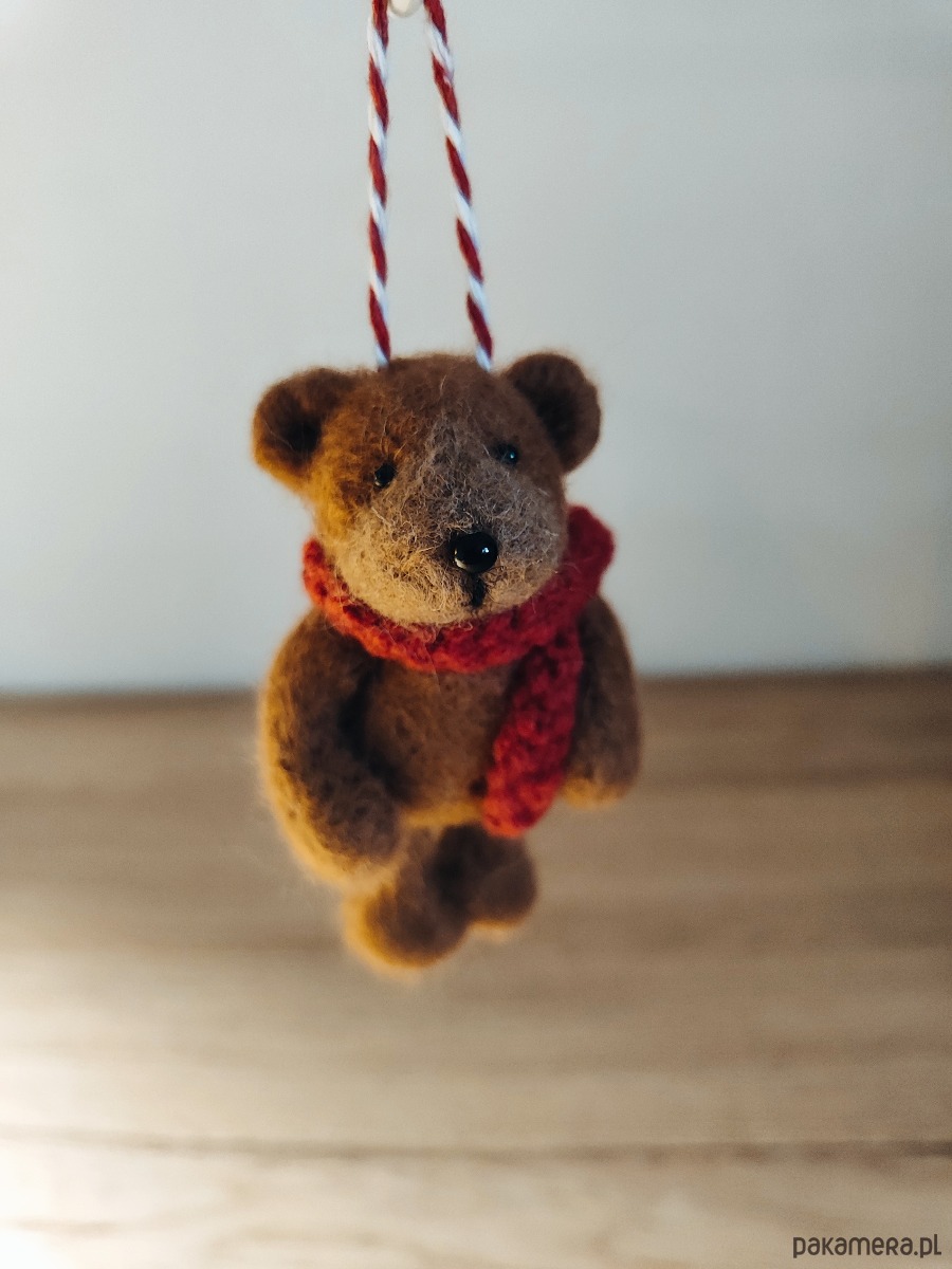 Myszka Fiszka -miś wełna filc bombka święta zawieszka