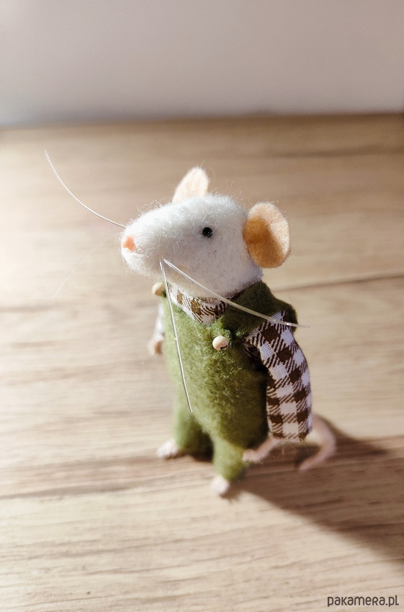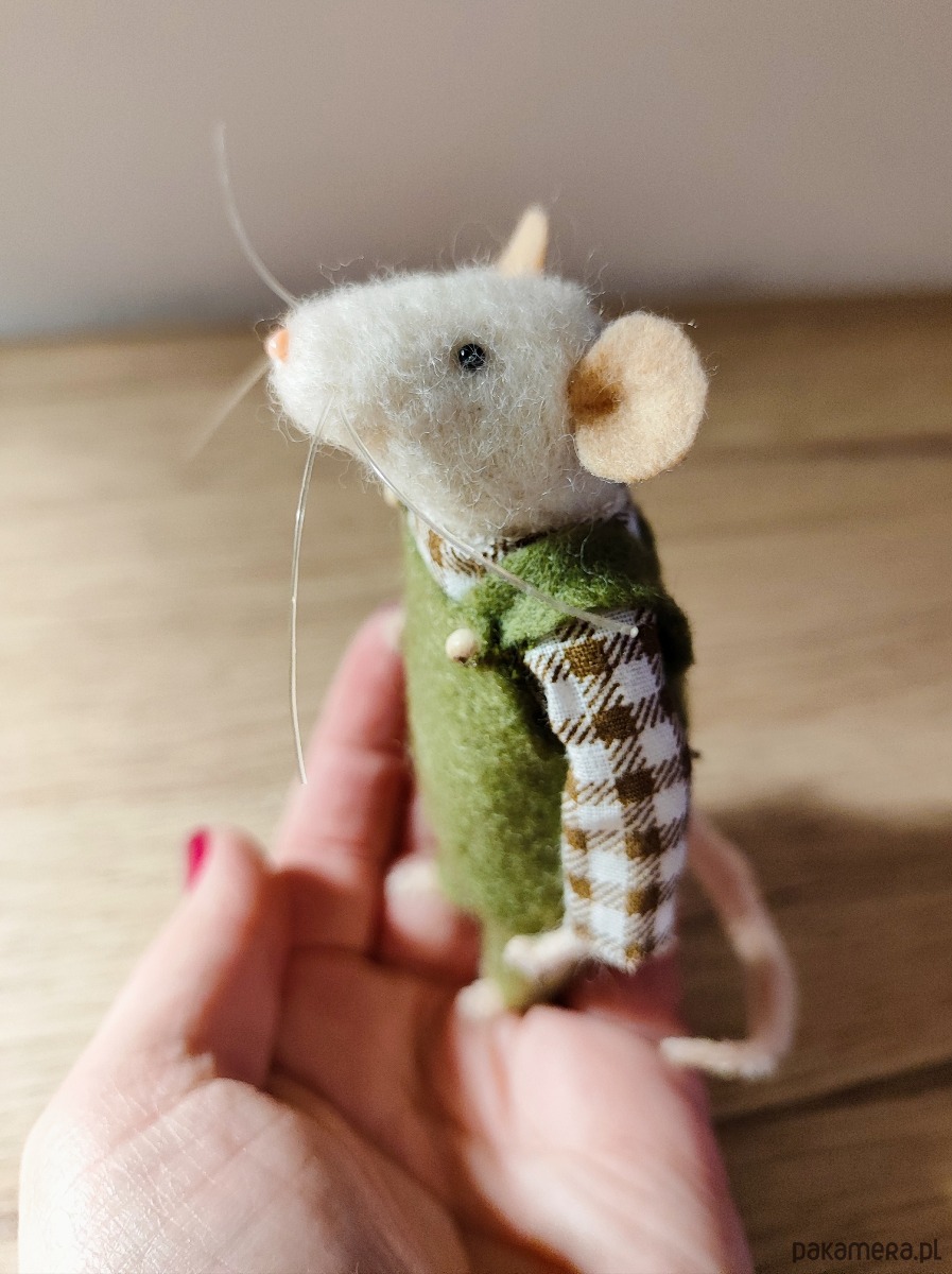 Sprzedam zrobioną przeze mnie myszkę z wełny czesankowej metodą filcowania na sucho. Myszka ma około 10 cm wysokości , potrafi sama stać. W całości jest zrobiona ręcznie , łącznie z uszytymi ubrankami.