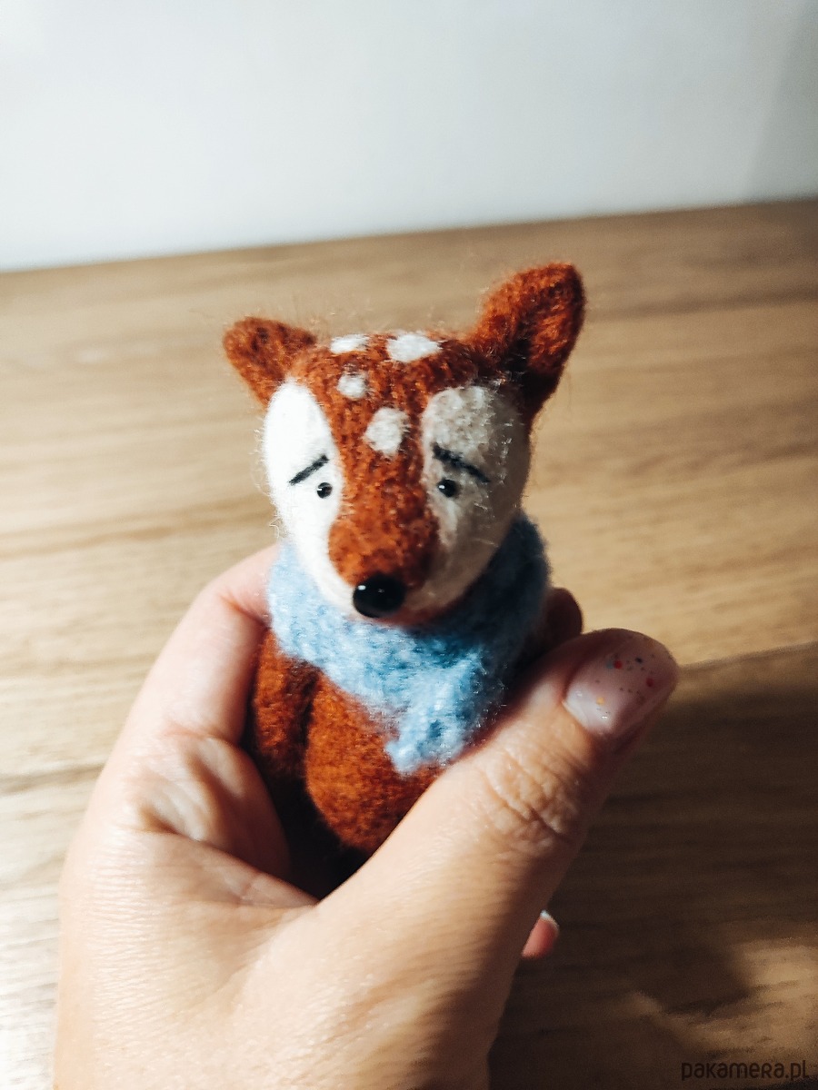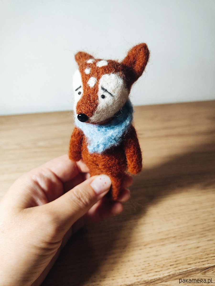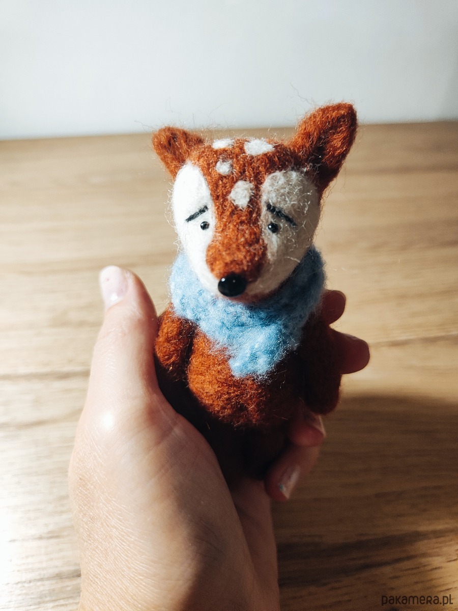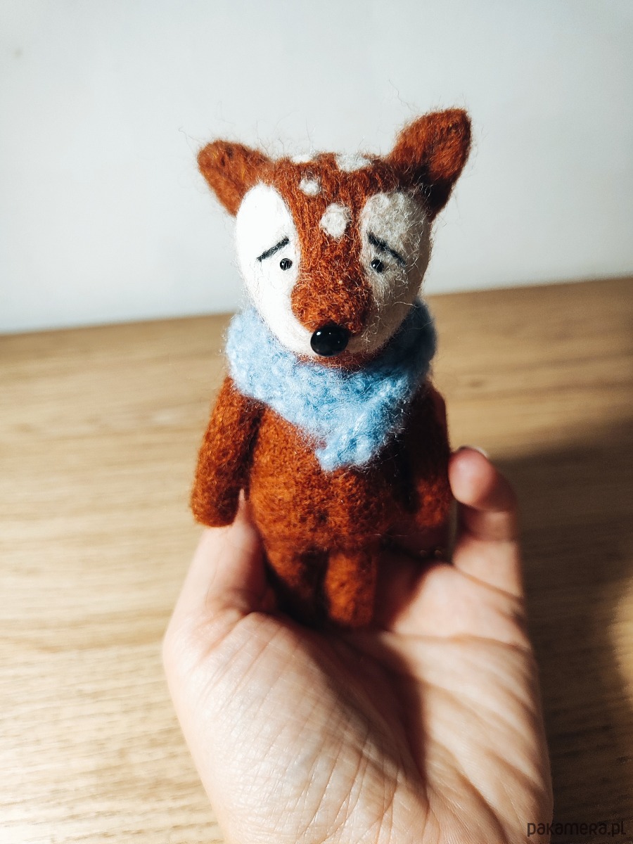 Sprzedam zrobioną przeze mnie figurkę z wełny czesankowej metodą filcowania na sucho. Sarenka ma około 11/12 wysokości i zrobiony na szydełku szaliczek.