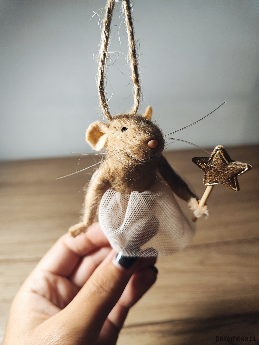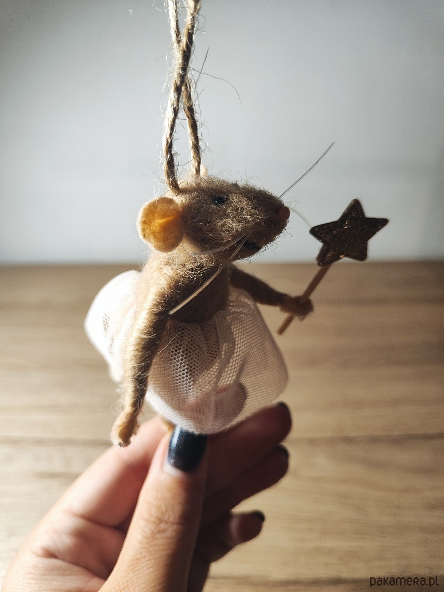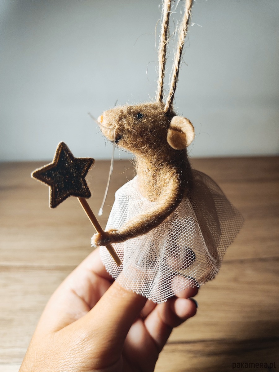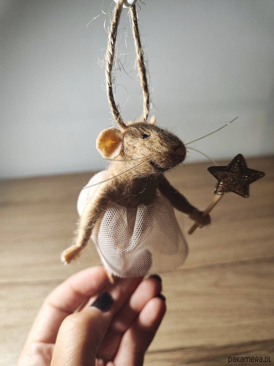Myszka Fiszka -wełna filc bombka święta zawieszka