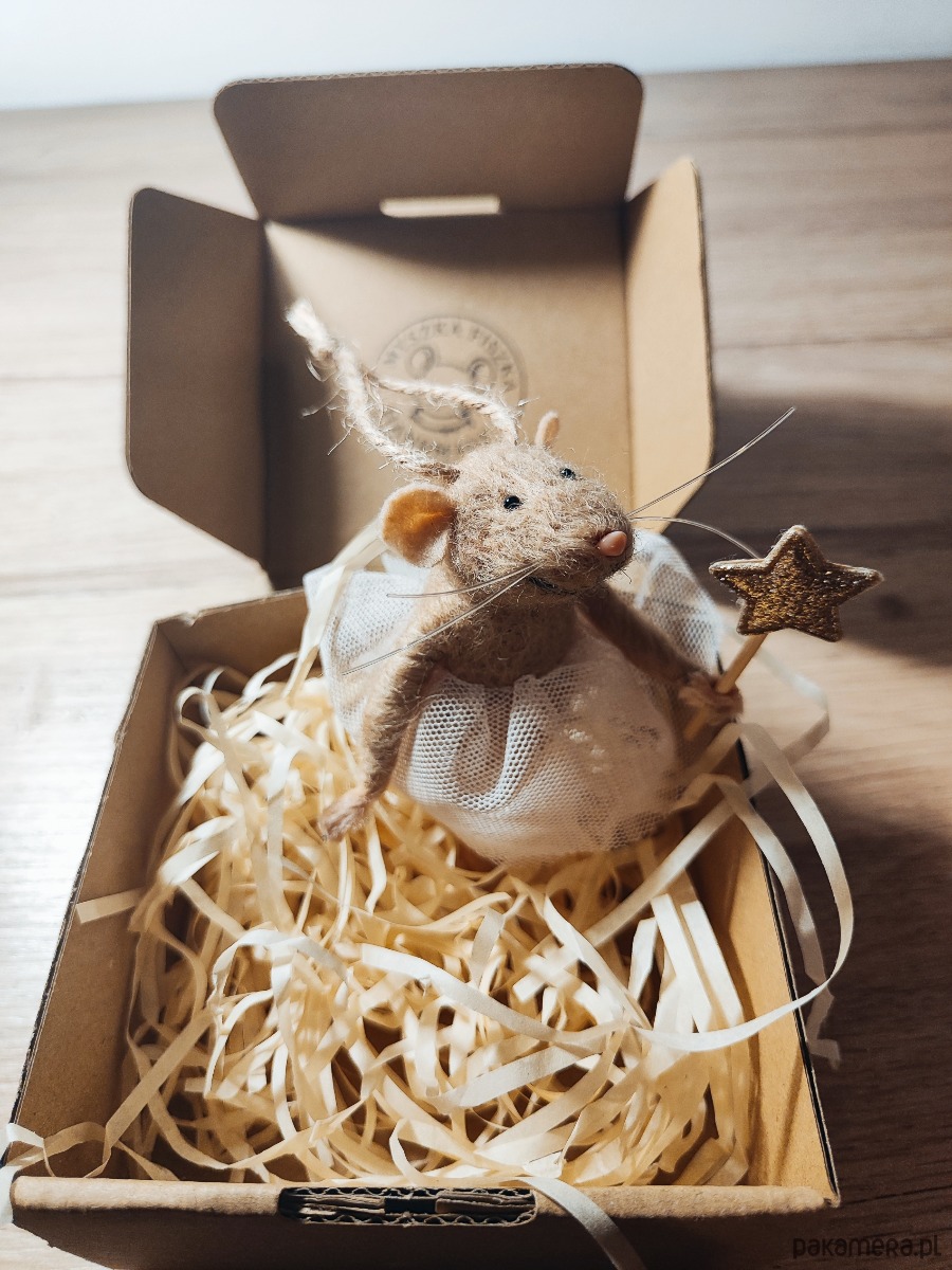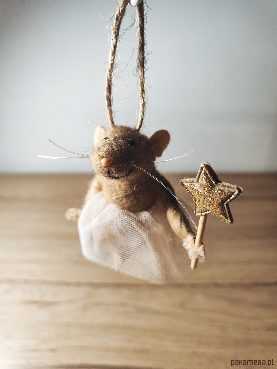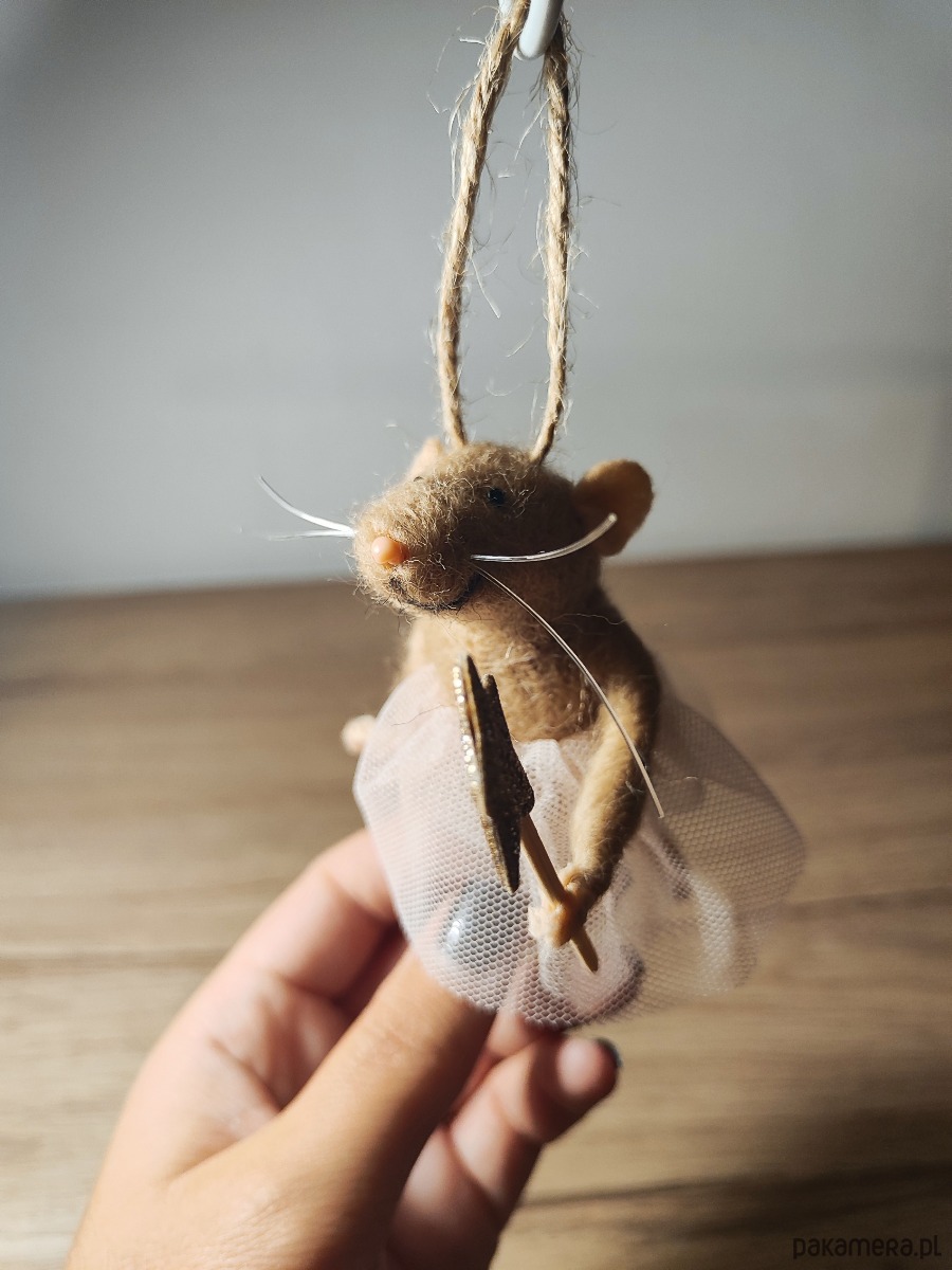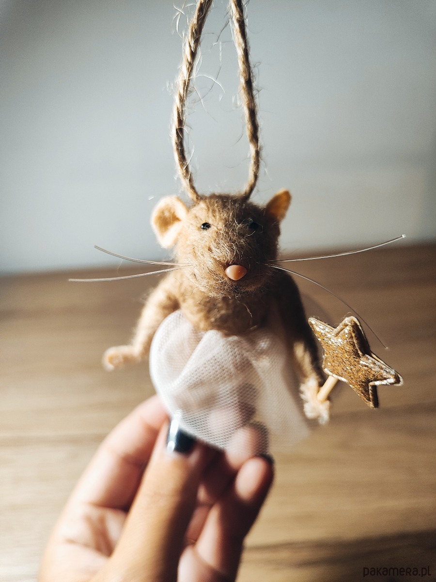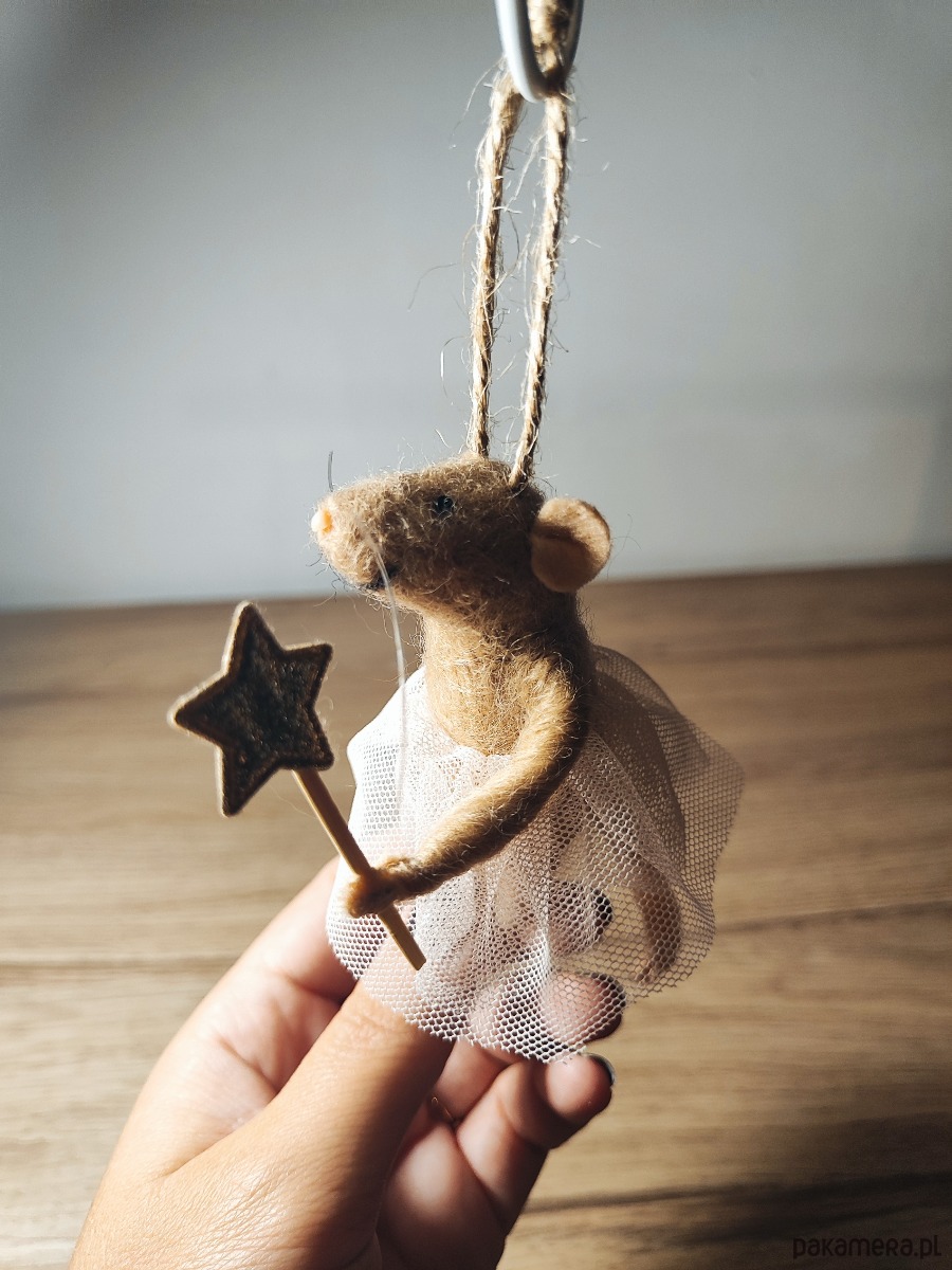 Myszka Fiszka -wełna filc bombka święta zawieszka
