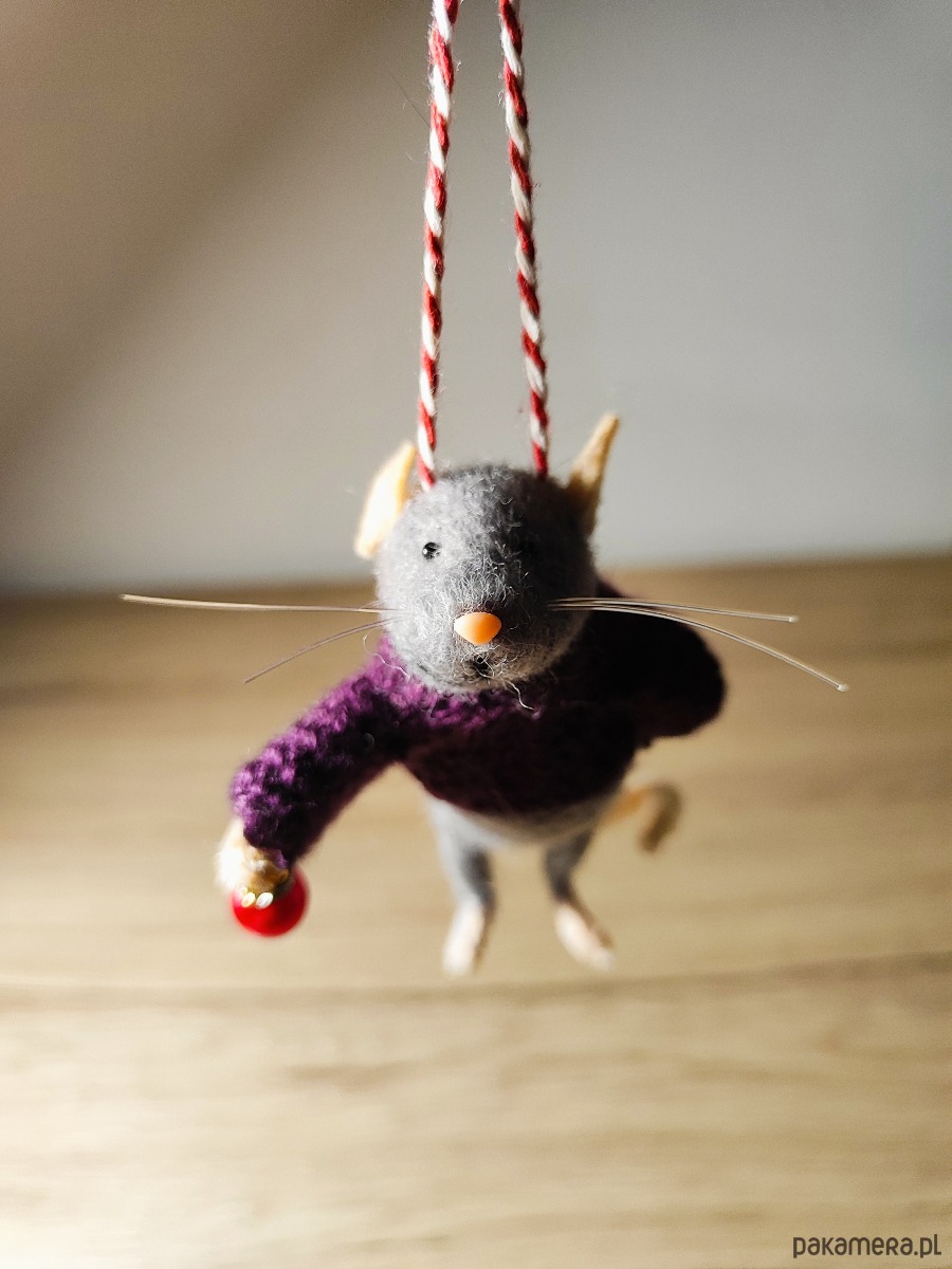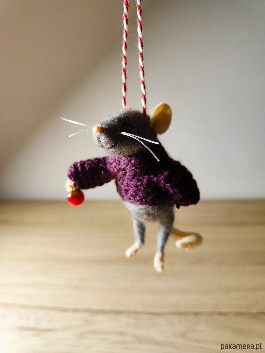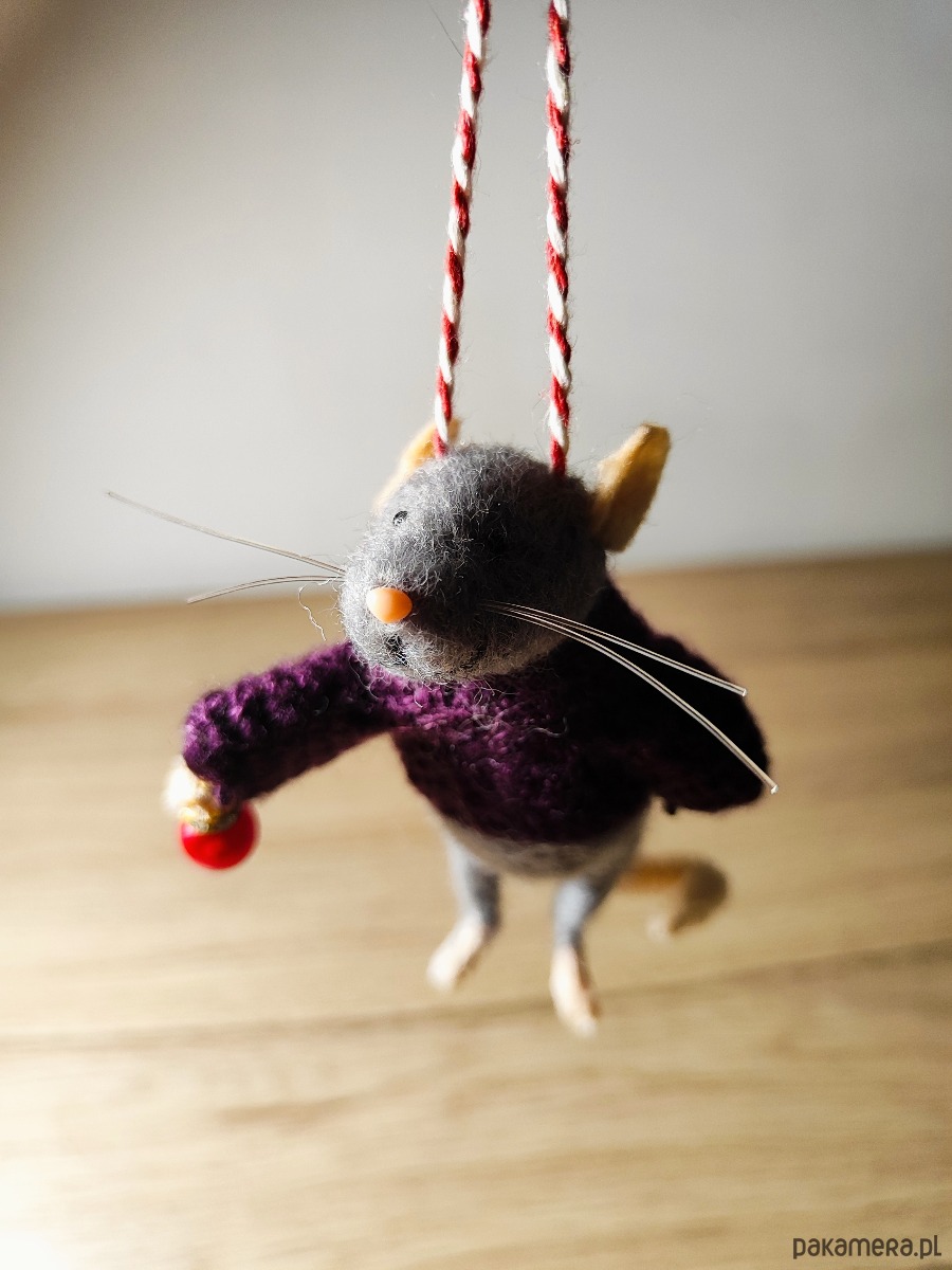 Myszka Fiszka -wełna filc bombka święta zawieszka