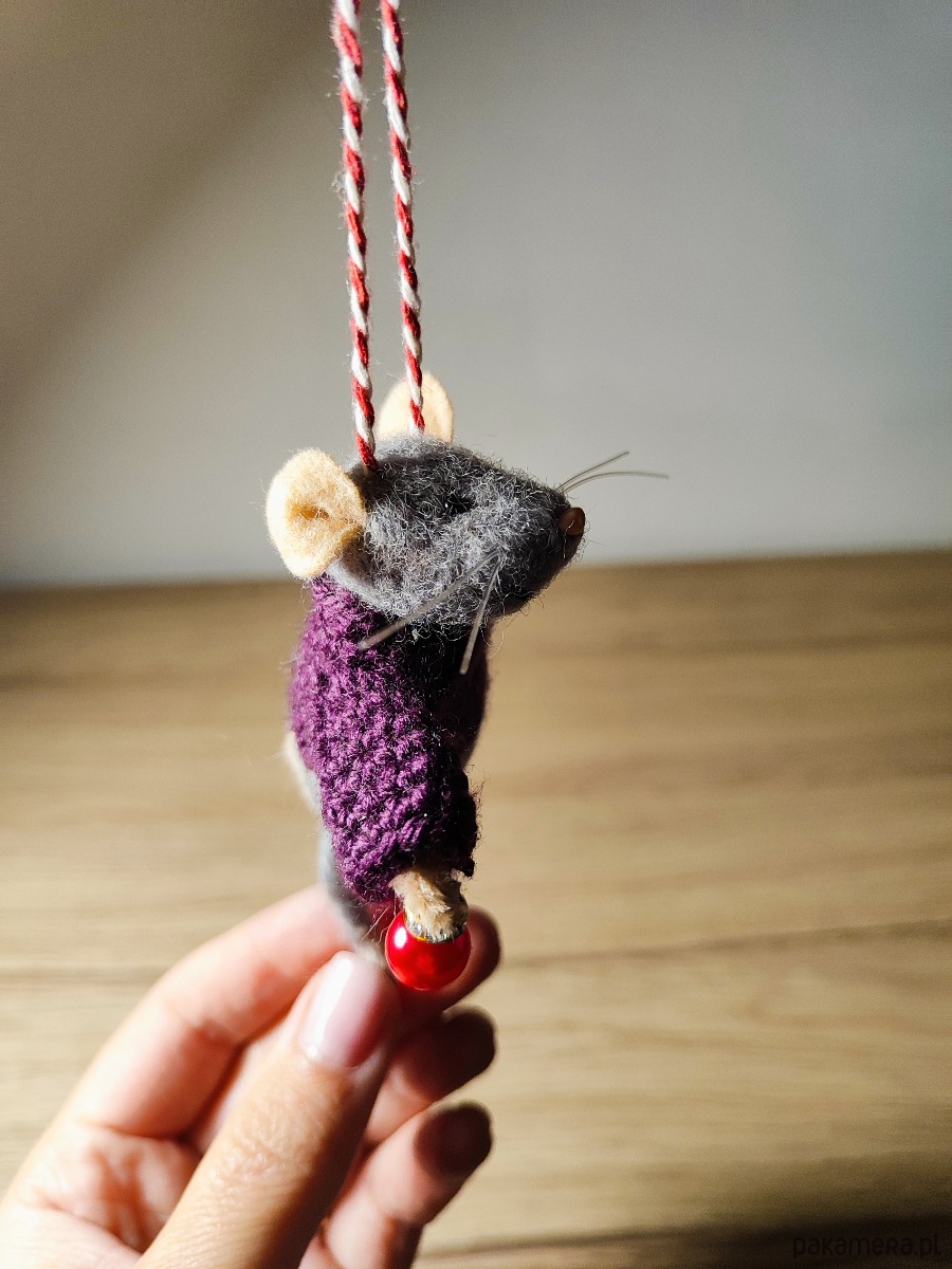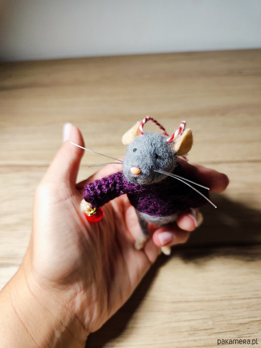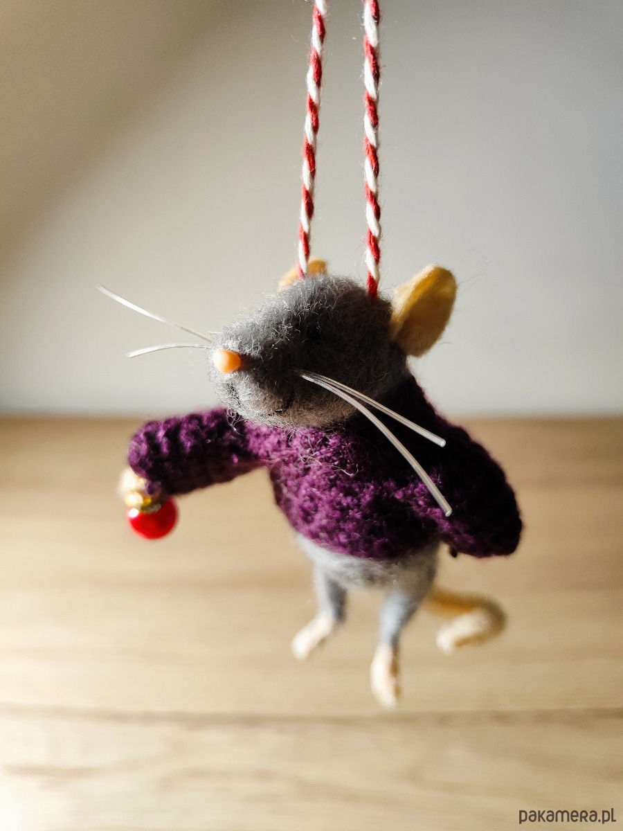 Myszka Fiszka -wełna filc bombka święta zawieszka