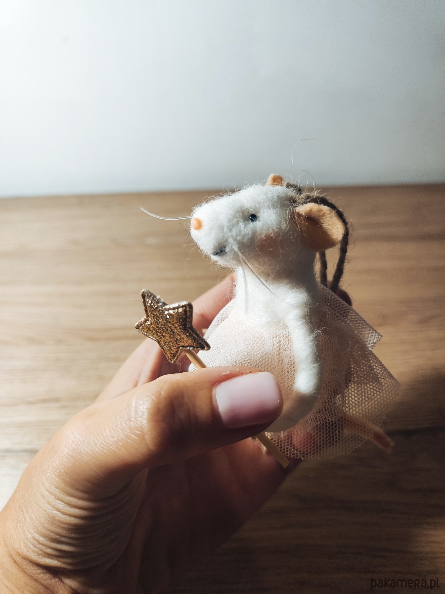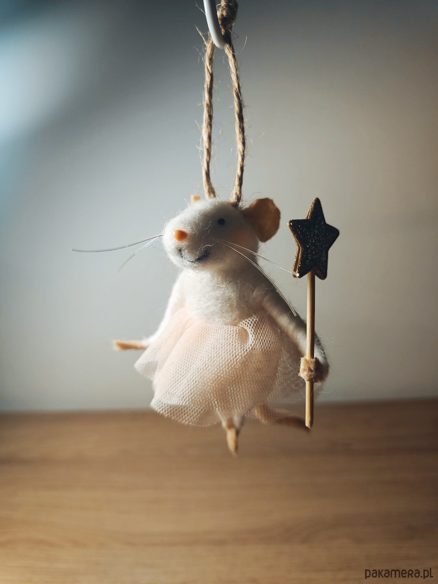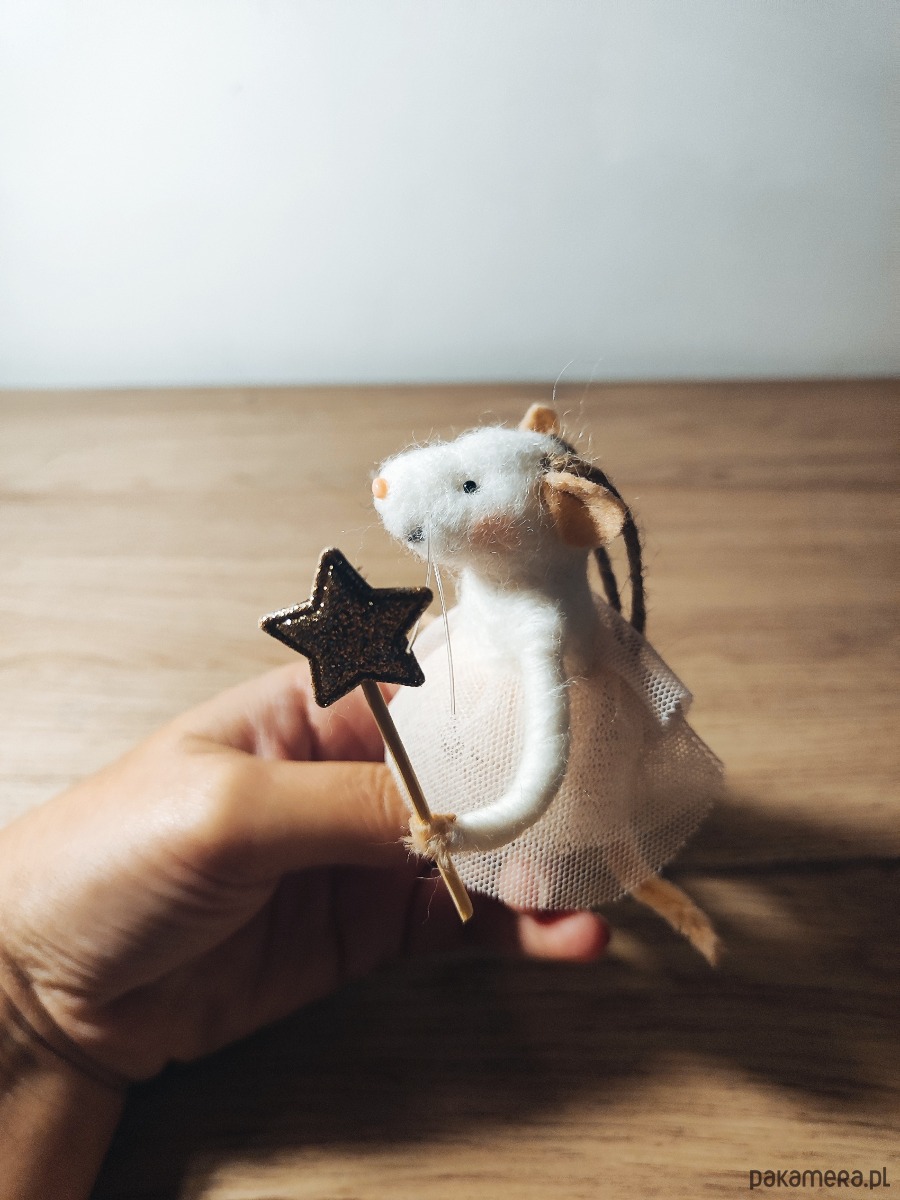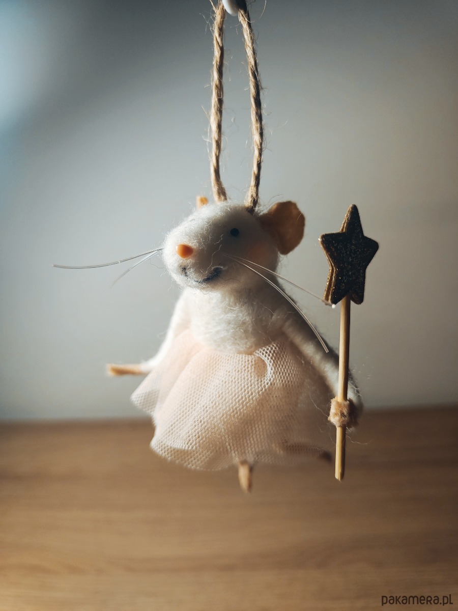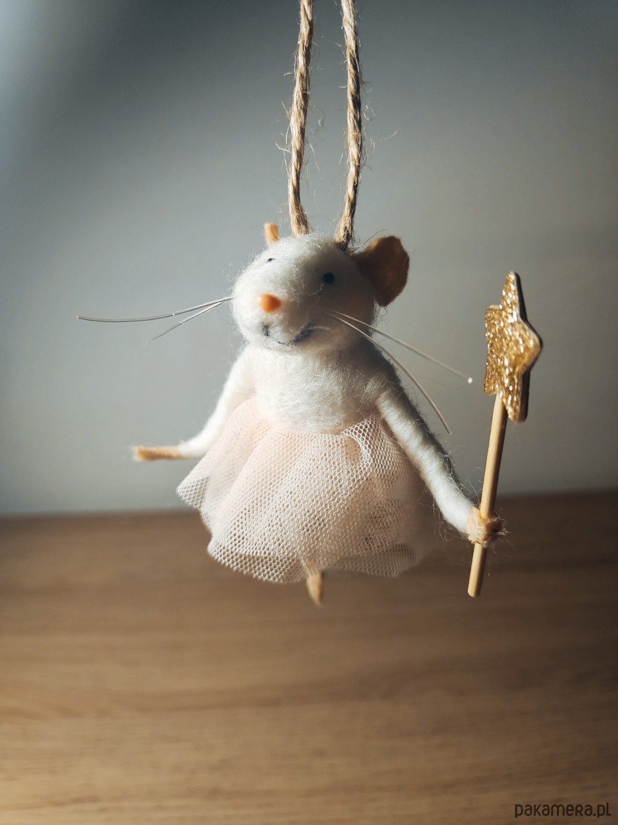 Myszka Fiszka -wełna filc bombka święta zawieszka