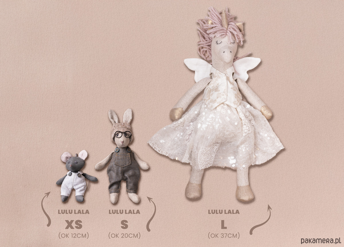 Wszystkie Lulu Lale powstają w całości w małej pracowni na łódzkim poddaszu, są wykonane z lnu, mają ręcznie haftowane twarze. Można je rozbierać i przebierać, a także tulić i całować!