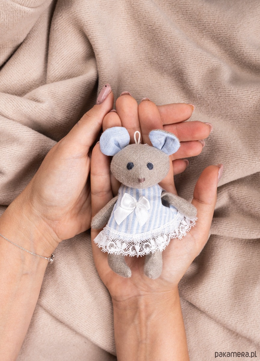 Myszka Zuzia XS lniana boho maskotka brelok