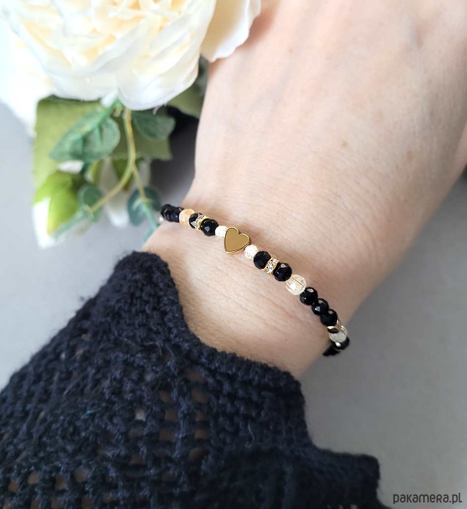 Przepiękna elegancka bransoletka zrobiona z kamieni naturalnych: Cytrynu, Turmalinu, Hematytu oraz Cyrkonii.
