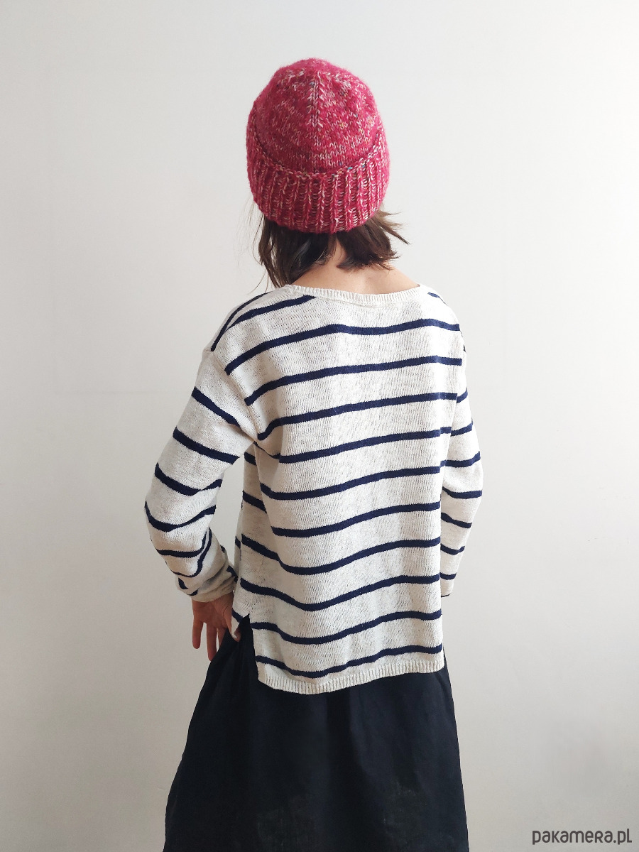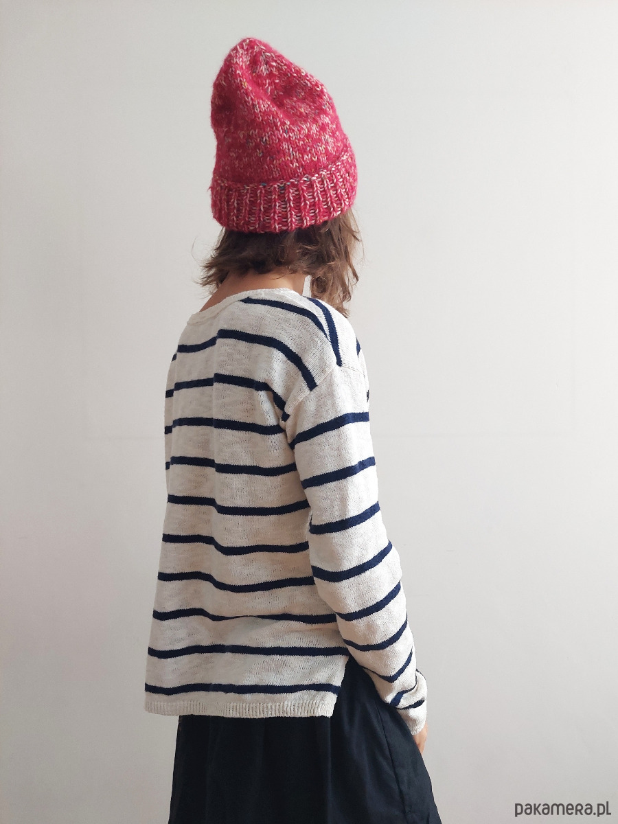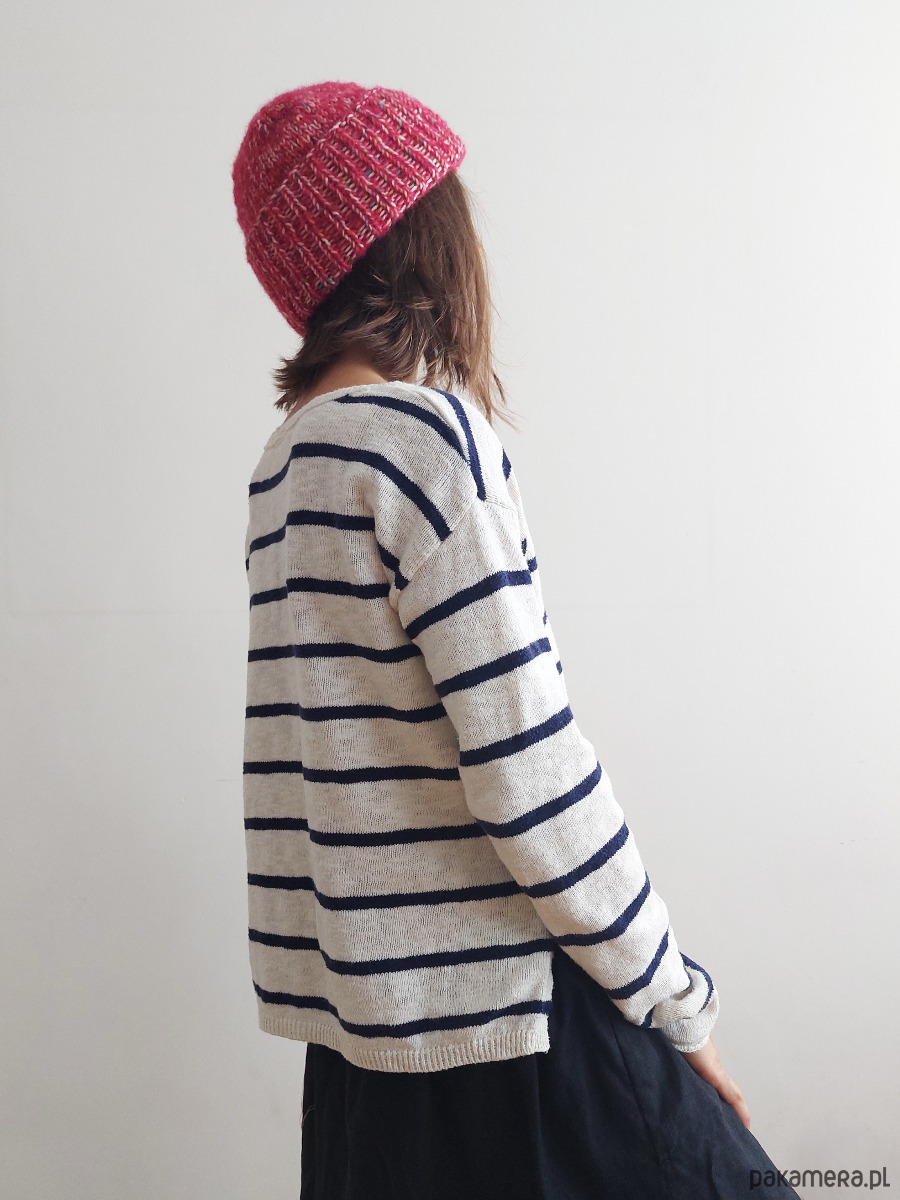 Czapka "HA_03" jest lekka, cudownie ciepła, wykonana ręcznie na drutach z wełny alpaki i jedwabiu morwowego (jedwab- cruelty free - pozyskiwany ze zbieranych, pustych kokonów jedwabnika morwowego) (Drops brushed Alpaca Silk + Drops Fiesta - superwash klasa 1) . Może być zakładana z pełnym odwinięciem (w stylu fisherman beanie), z lekkim odwinięciem lub zupełnie bez odwinięcia.