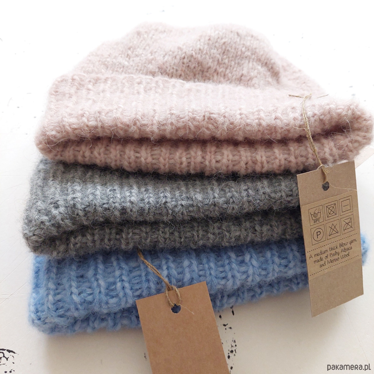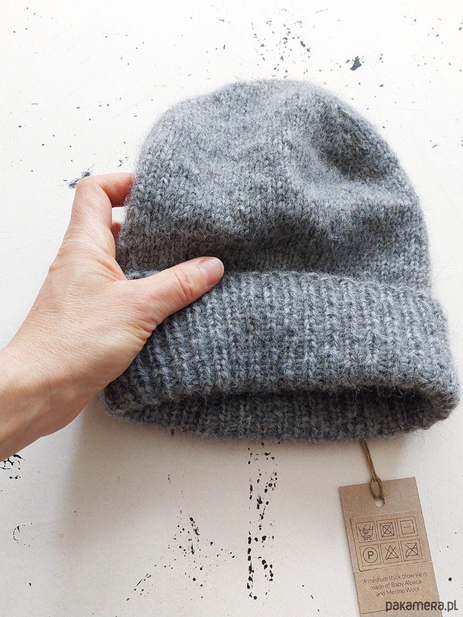Czapka "HA_06" jest lekka, cudownie ciepła, wykonana ręcznie na drutach z włóczki typu blow yarn - mieszanka baby alpaca i wełny merynosów - Drops Air - 65% Alpaca, 28% Poliamid, 7% Merino. Może być zakładana z pełnym odwinięciem (w stylu fisherman beanie), z lekkim odwinięciem lub zupełnie bez odwinięcia.