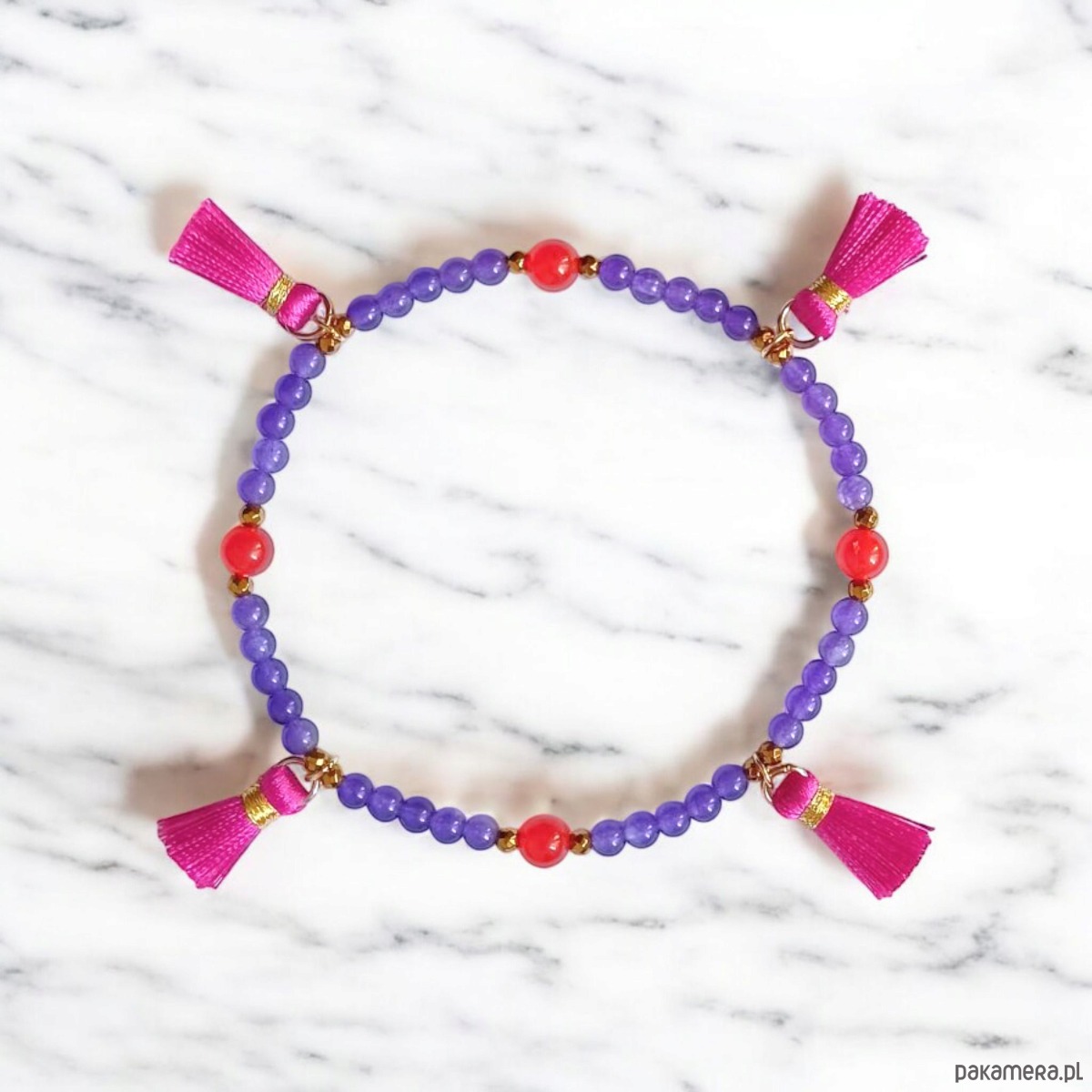 NA NOGĘ : summer collection : jadeit i chwosty : fiolet-pomarańcz-róż