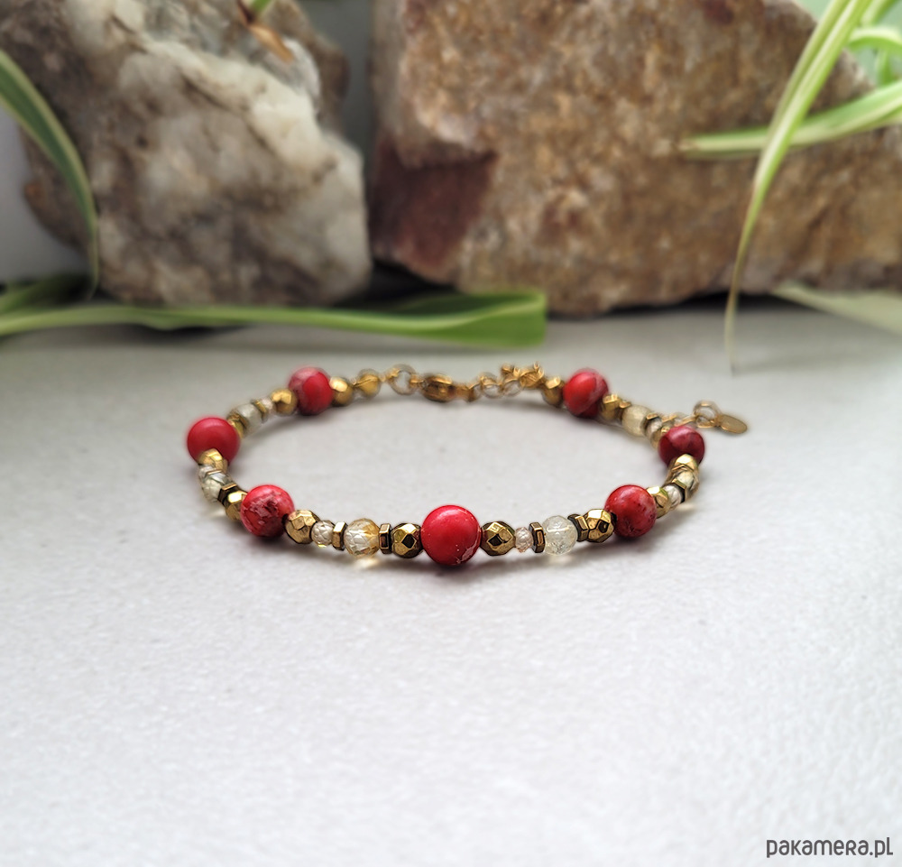 Przepiękna elegancka bransoletka zrobiona z kamieni naturalnych: Cytrynu, Jaspisu cesarskiego, Hematytu oraz Cyrkonii.