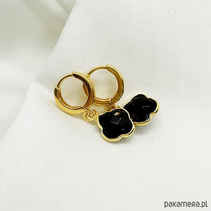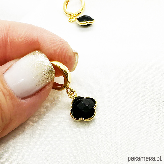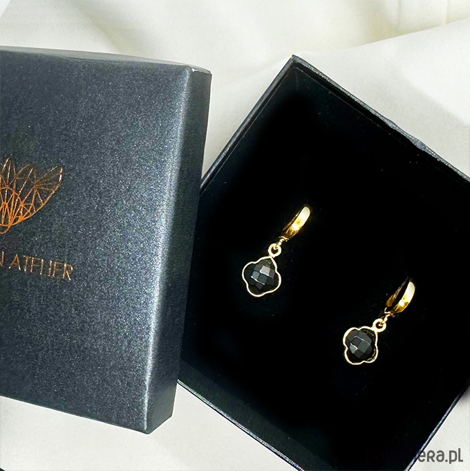 NA SZCZĘŚCIE- Wyjątkowo efektowne, eleganckie kolczyki skomponowane z pięknych mieniących się czarnych kamieni onyksów w oprawie w kształcie koniczynek. Kolczyki sprawdzą się przy wielu okazjach dodając wyjątkowego wyglądu wielu stylizacjom.
