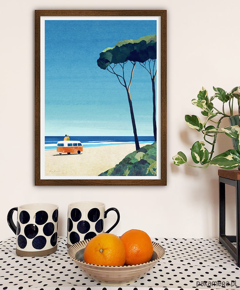Najlepszym sposobem na oderwanie się od codzienności jest wybranie się w podróż. Nasz plakat to zachęta do chwytania każdej okazji, by zmienić ją w małą przygodę. Na plakacie para siedząca na kamperze relaksuje się wpatrzona w morski brzeg. Plakat morski z kamperem to świetna dekoracja domu pozwalająca marzyć o małych i dużych wyprawach.