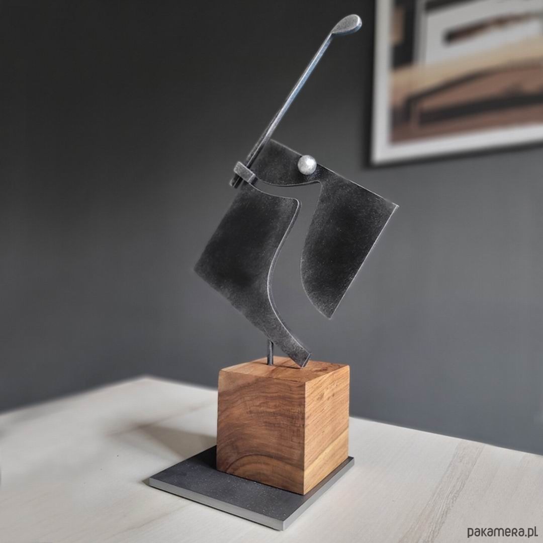 Uczcij sportowe osiągnięcia w wyjątkowym stylu dzięki tej ręcznie wykonanej statuetce golfowej, która łączy naturalne piękno drewna z elegancją metalu. Idealna na turnieje, ceremonie wręczania nagród lub jako ponadczasowy upominek dla miłośników golfa.