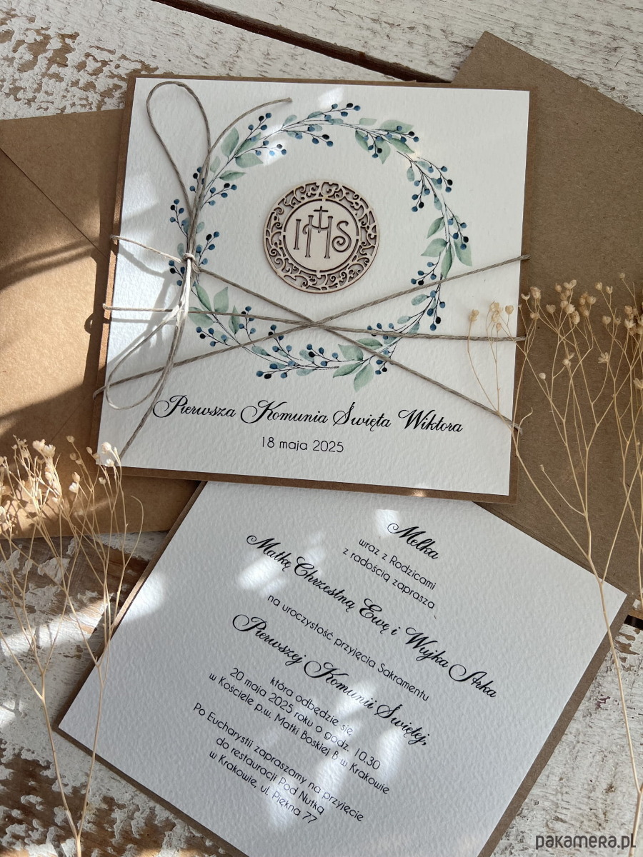 Najpiękniejsze oryginalne rustykalne zaproszenia na komunię - komunijne ręczn