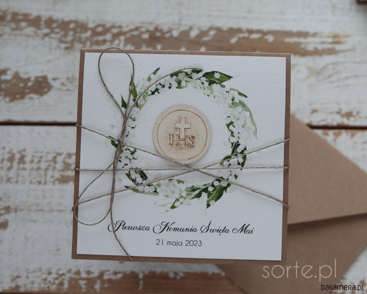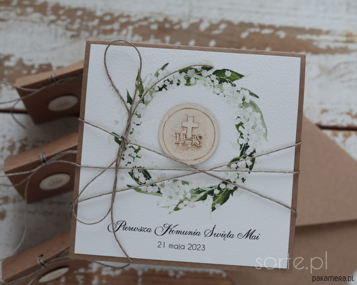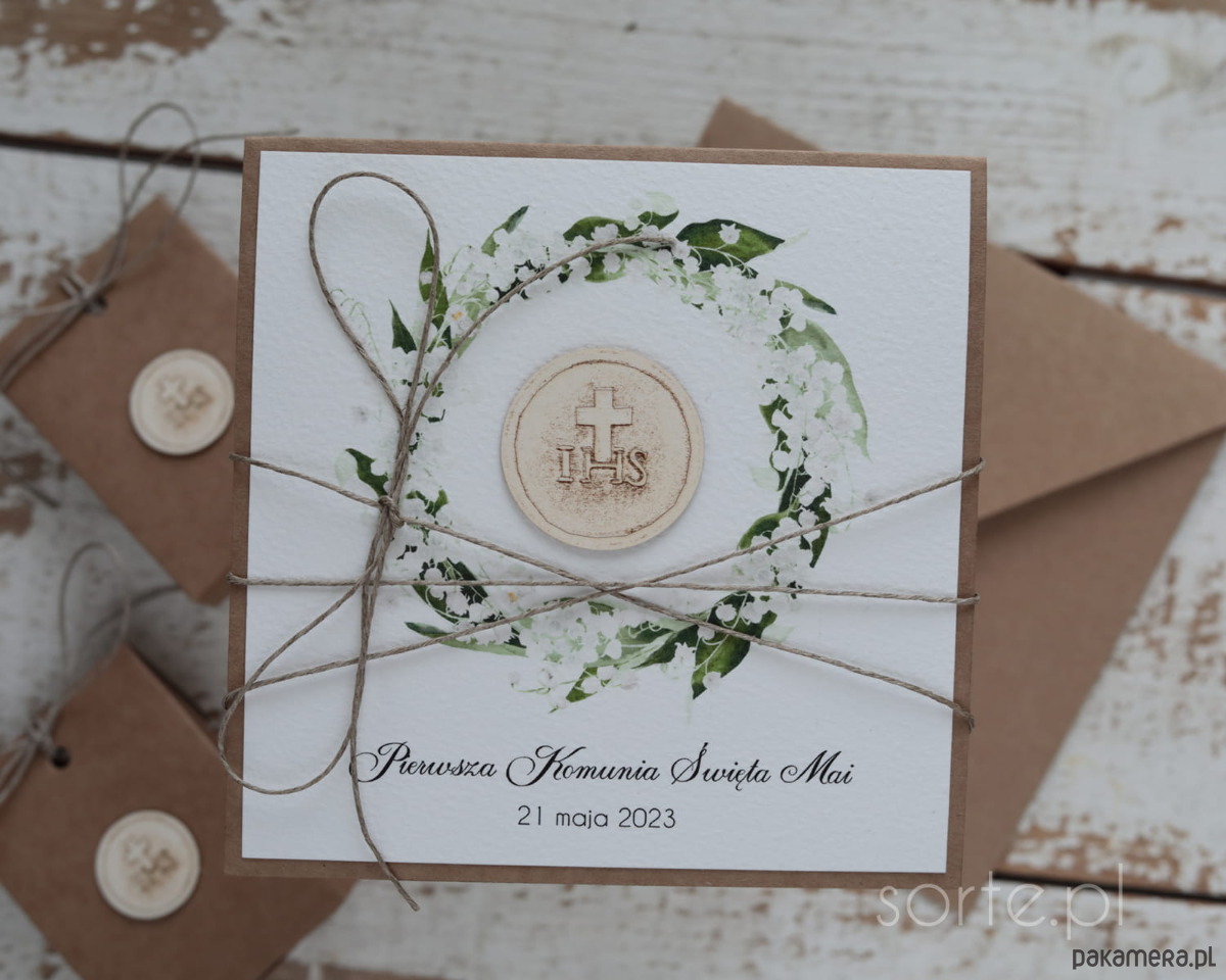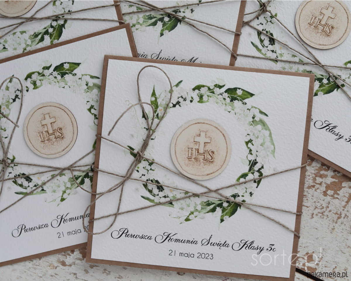 Najpiękniejsze oryginalne rustykalne zaproszenia na komunię - komunijne ręcznie robione dla chłopca, dla dziewczynki SORTE