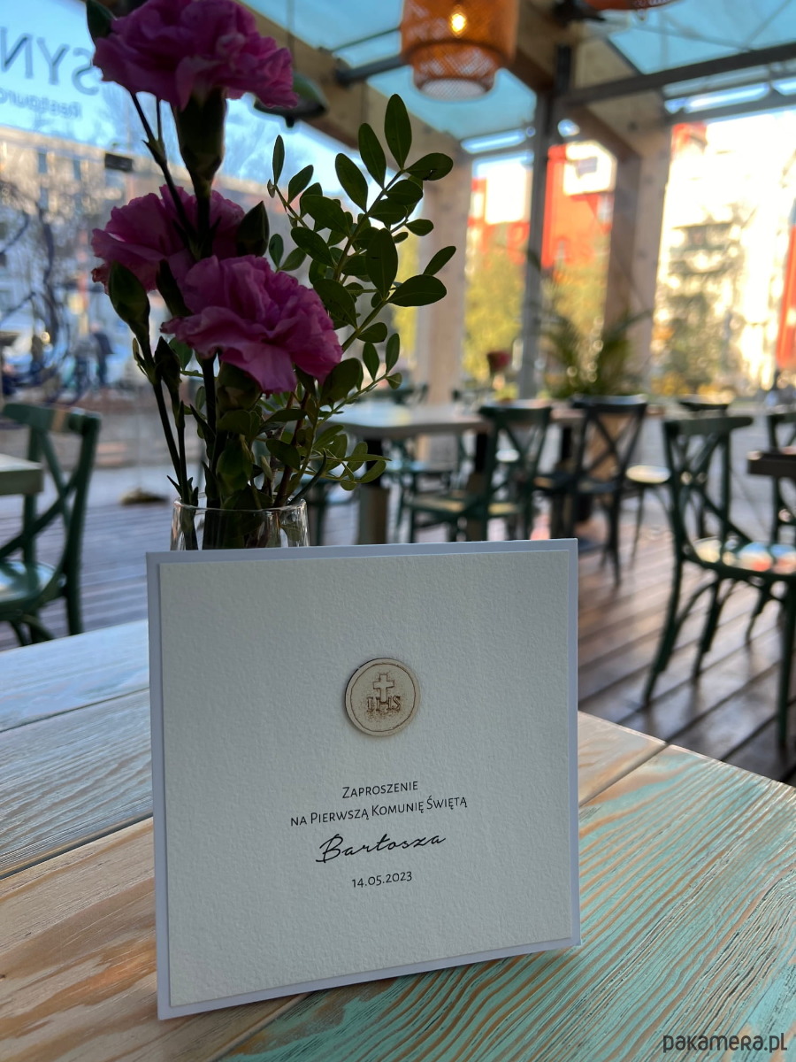 Wyjątkowe zaproszenia na komunię z pełną personalizacją wykonane z najwyższą dbałością o dobór materiałów oraz wykonanie.