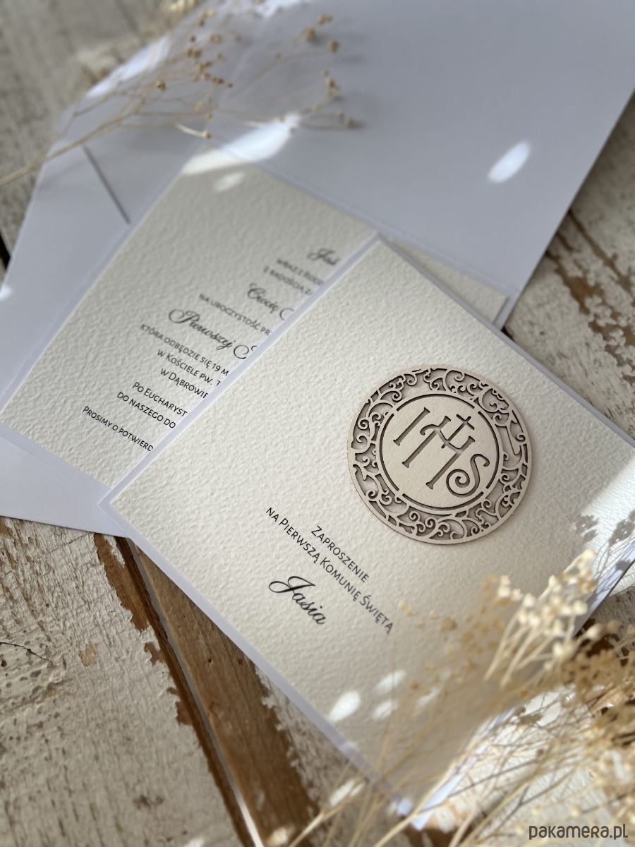 Wyjątkowe zaproszenia na komunię z pełną personalizacją wykonane z najwyższą dbałością o dobór materiałów oraz wykonanie.