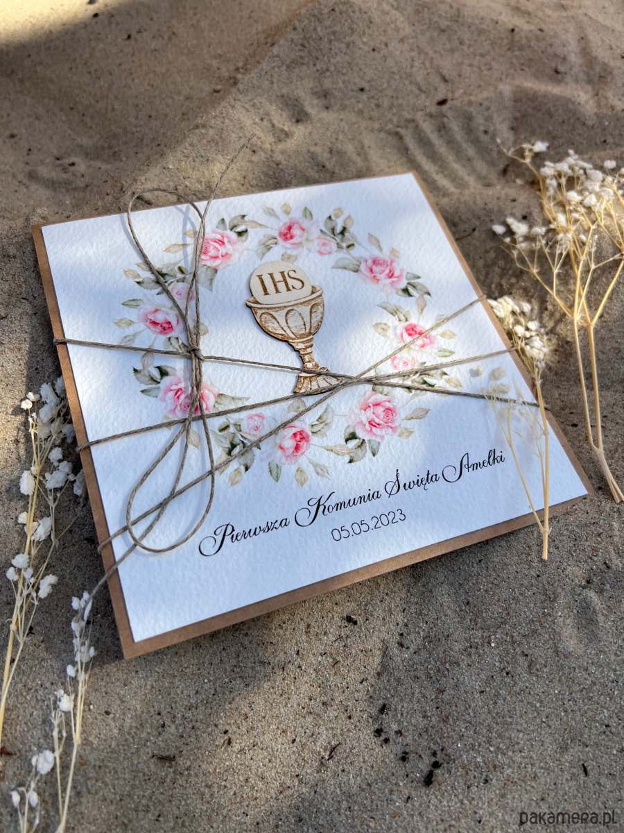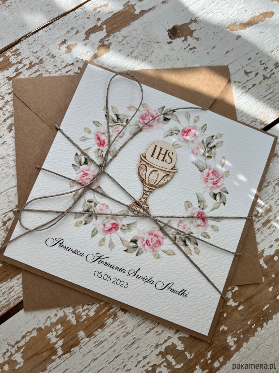 Najpiękniejsze zaproszenia handmade komunijne, na komunię dla dziewczynki - r