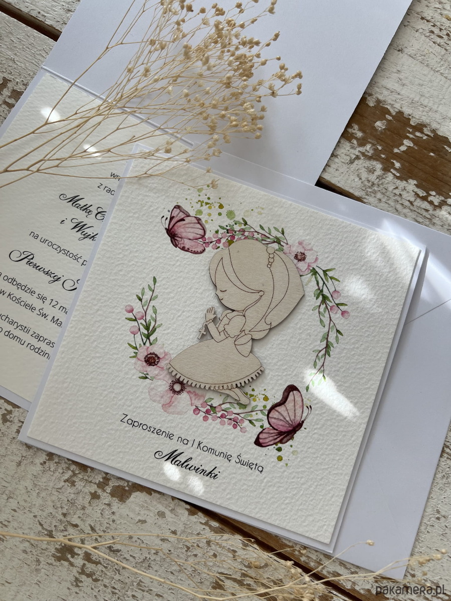 Najpiękniejsze zaproszenia handmade komunijne, na komunię dla dziewczynki - r