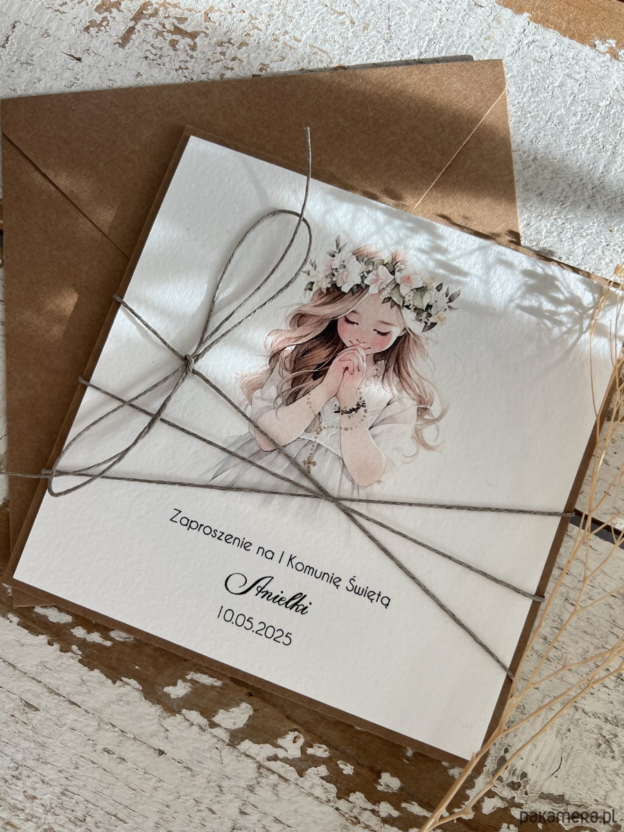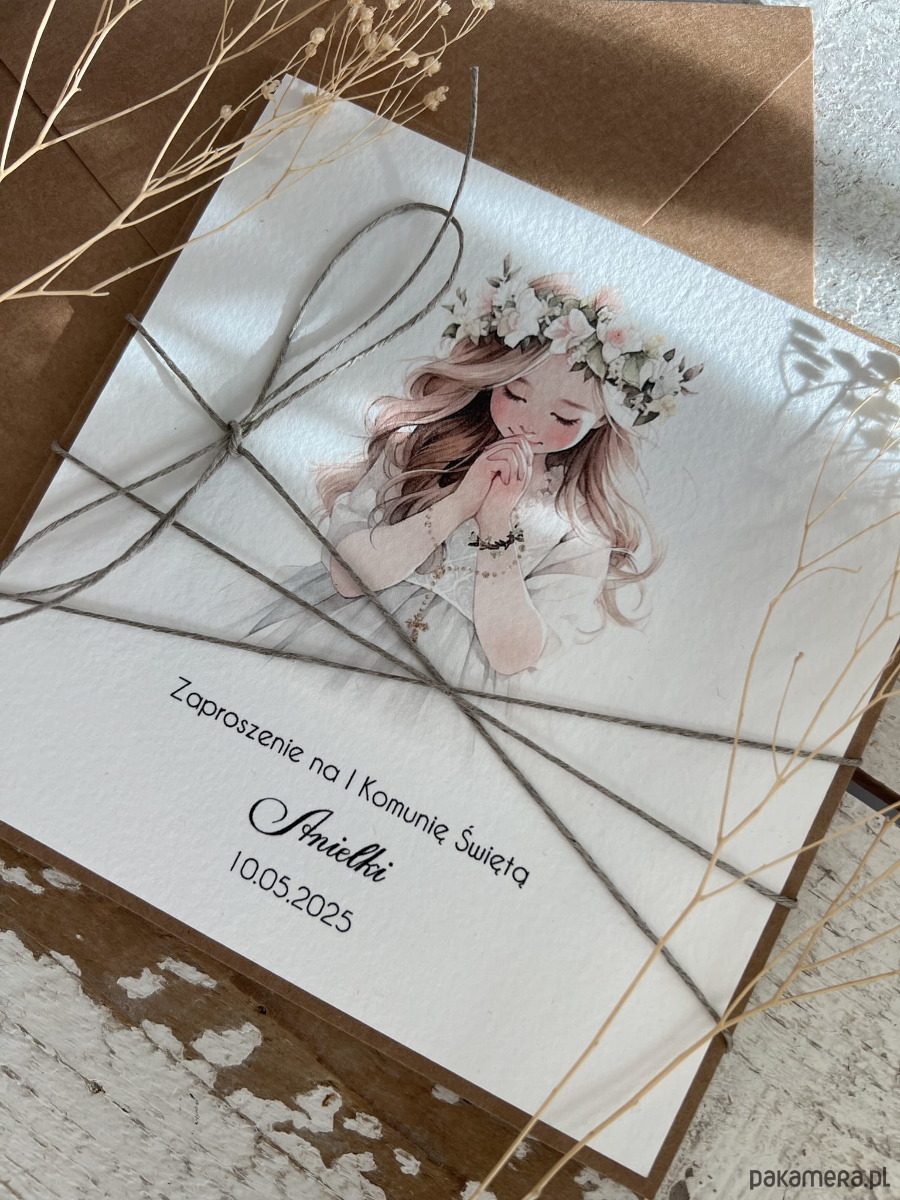 Najpiękniejsze zaproszenia na komunię personalizowane - zaproszenia komunijne ręcznie robione dla dziewczynki - dziewczynka boho z personalizacją