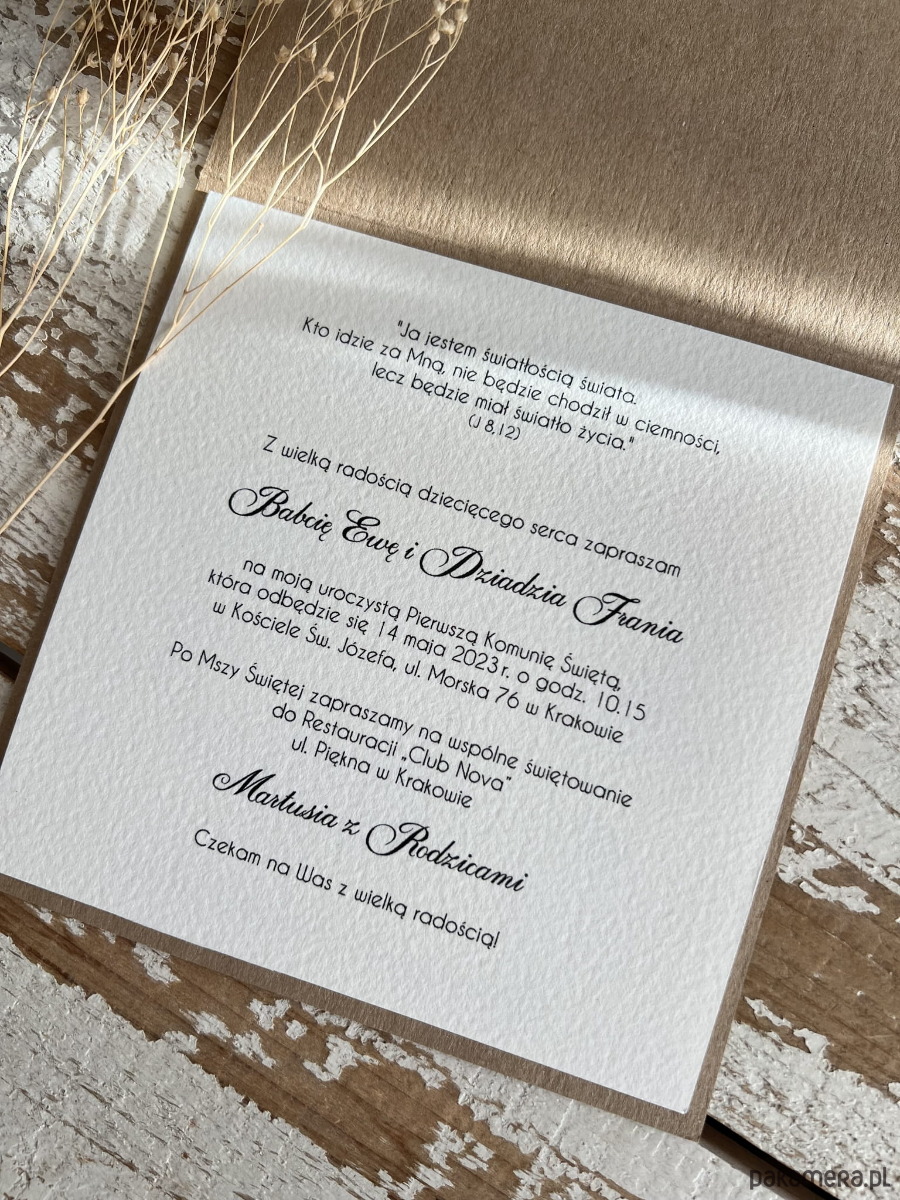 To zaproszenie to nie tylko zaproszenie. To kartka-prezent dla Twojego dziecka, by w subtelny sposób zaprosić gości na tak wyjątkową dla niego uroczystość. To także zaproszenie, które podkreśli wyjątkowość Waszych gości i ich ważność. To sposób na budowanie wspaniałych relacji.