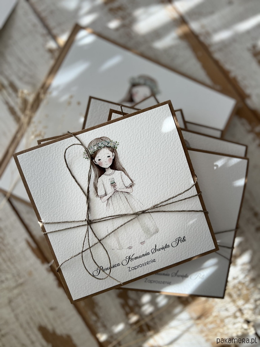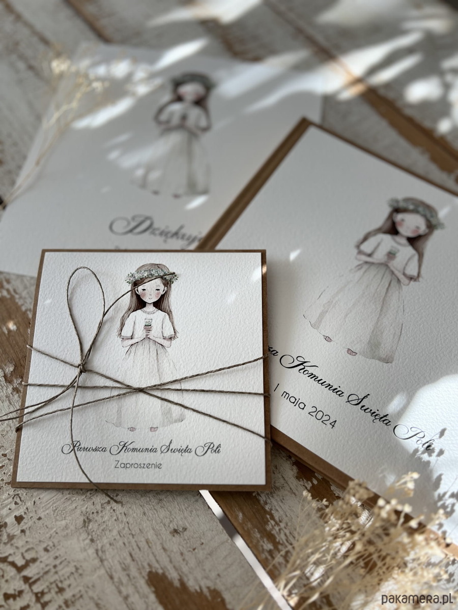 Najpiękniejsze zaproszenia na komunię - zaproszenia komunijne ręcznie robione dla dziewczynki - dziewczynka boho