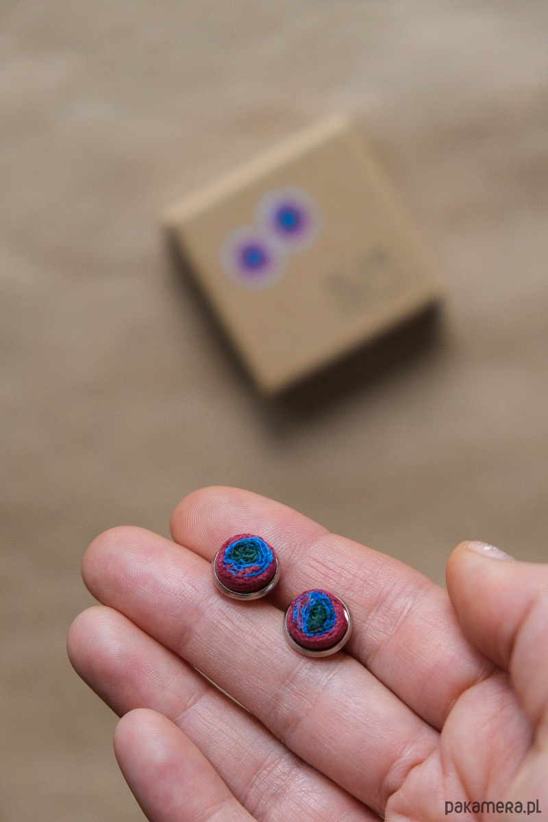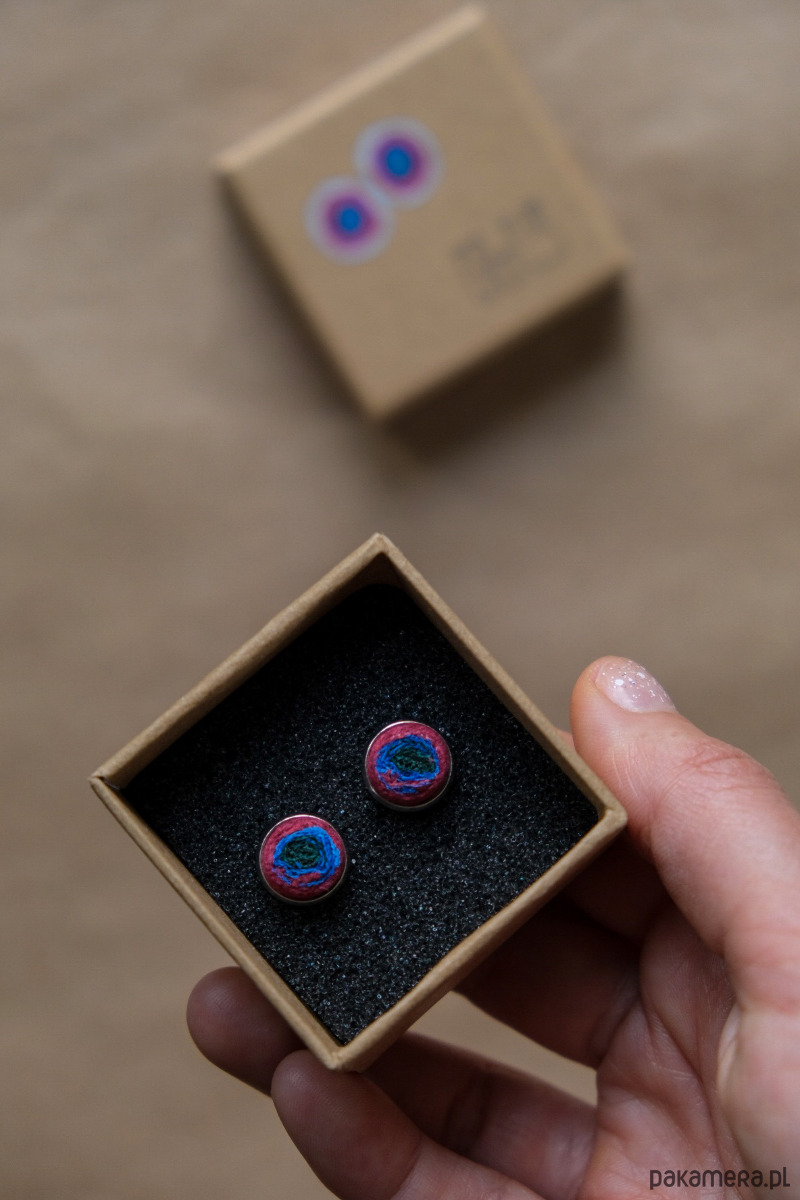 Oryginalne kolczyki na prezent dla żony. Małe, lekkie i kolorowe sztyfty