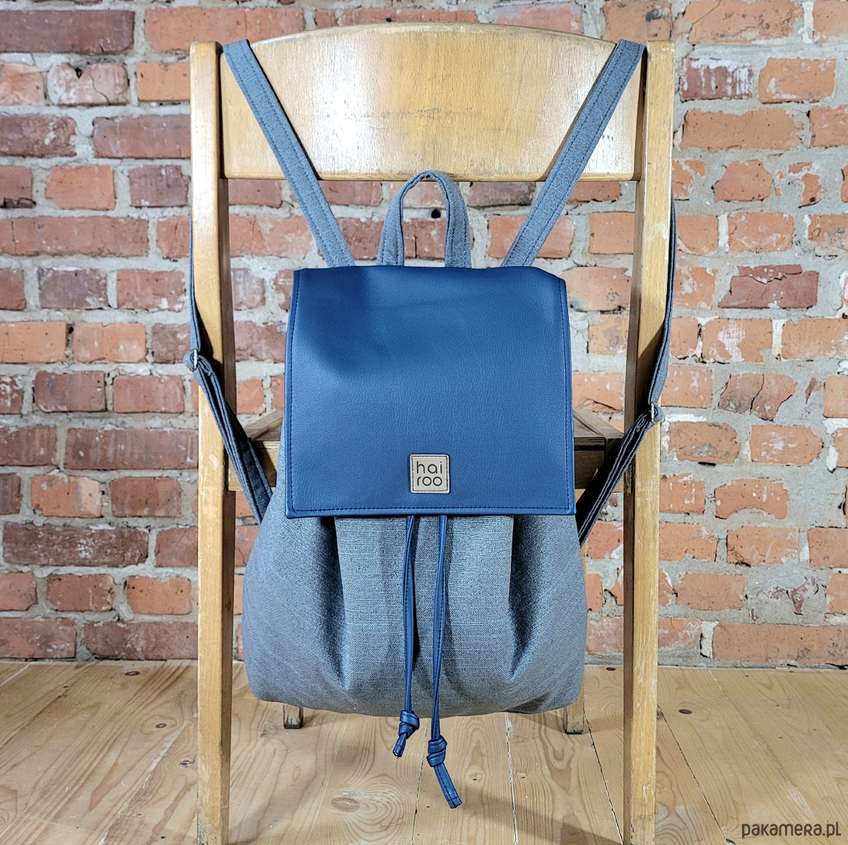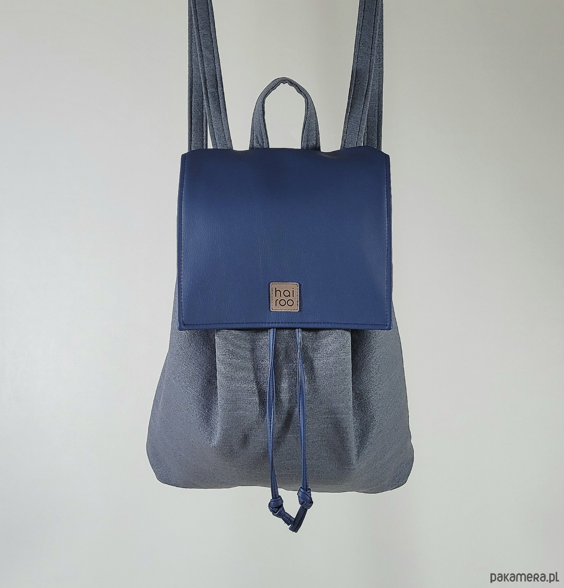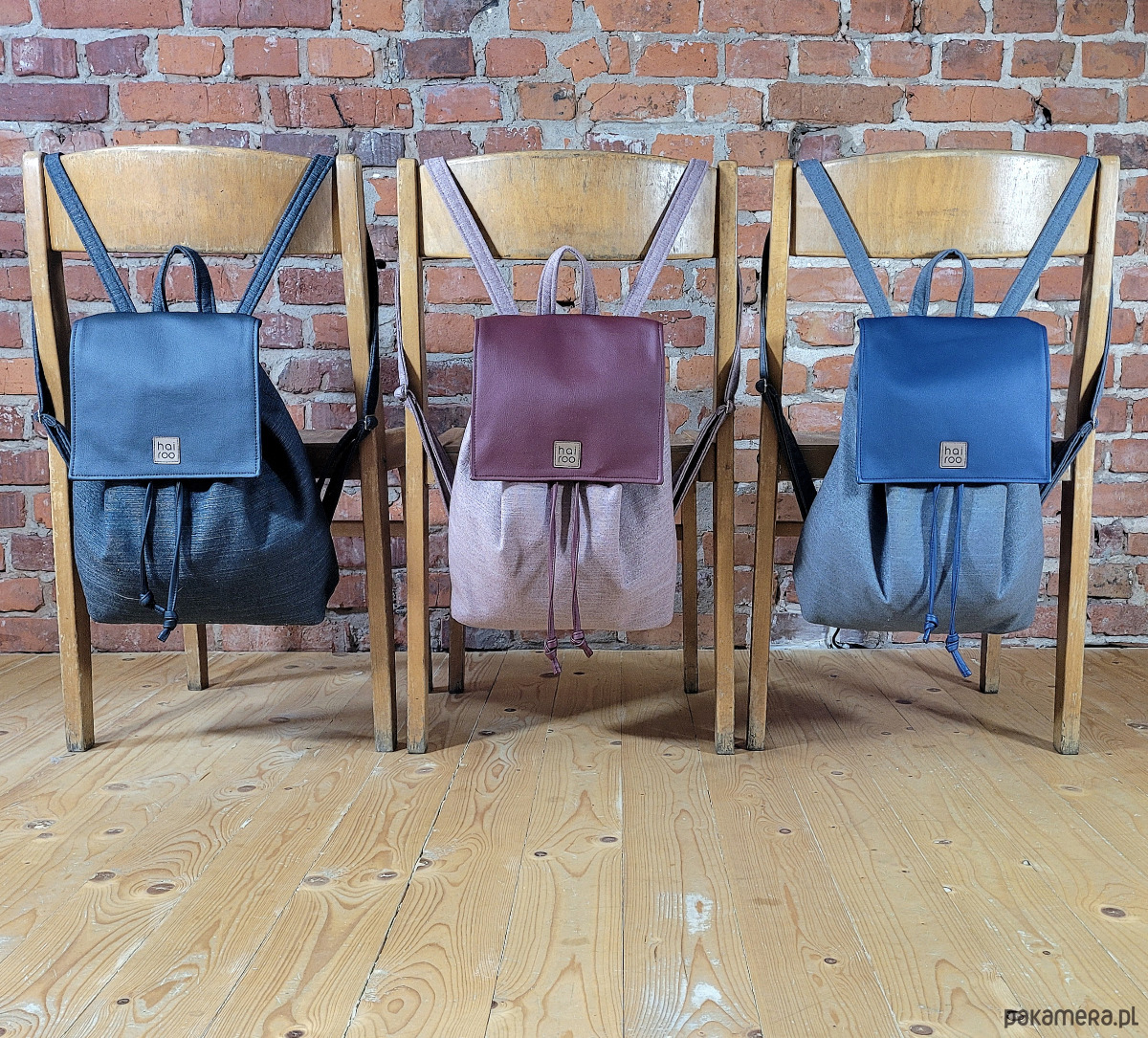 Bazę tworzy pojemna komora, uszyta z poliestru z recyklingu (tkanina z butelek PET). Całość zamyka niewielka klapa uszyta z ekoskóry z zapięciem na magnez i sznurki do ściągania (uszyte z ekoskóry).
