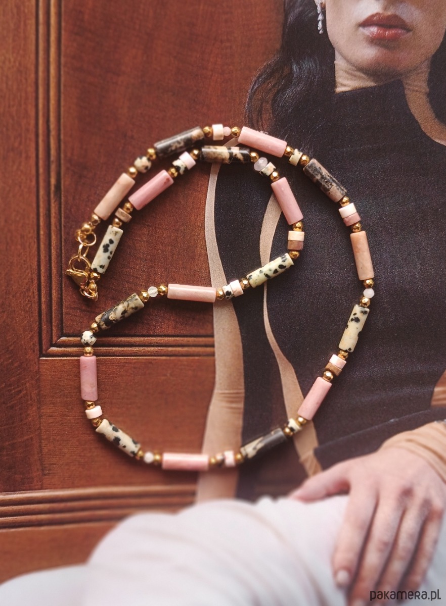 Naszyjnik z naturalnych kamieni na nici jedwabnej i z wykończeniami ze stali chirurgicznej.Dlugość 42cm.