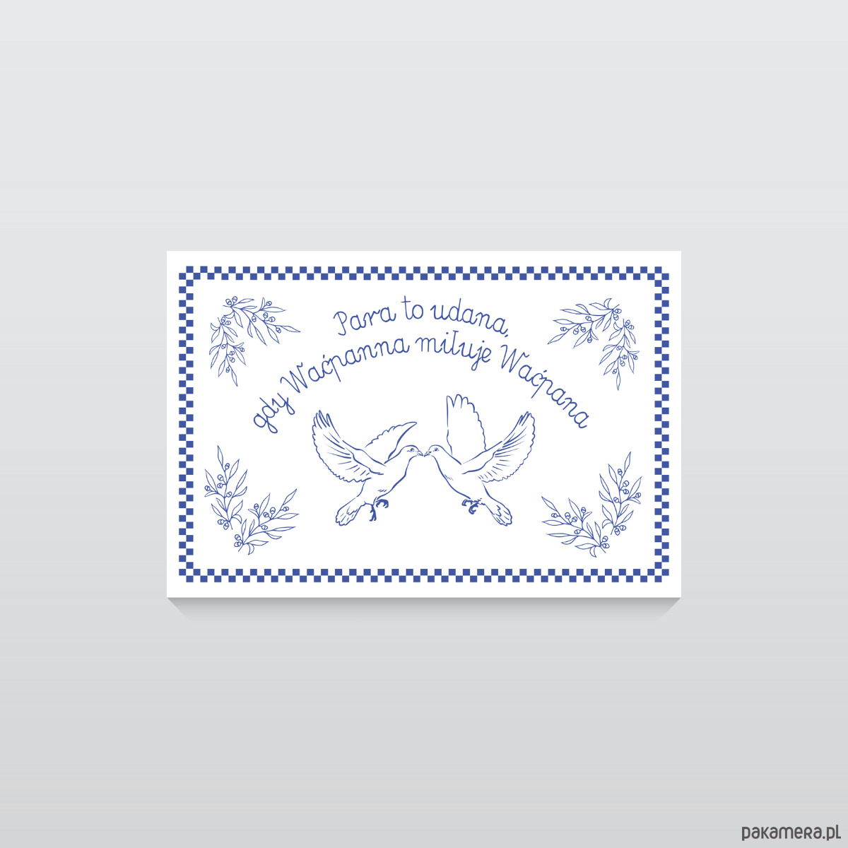 naklejka w kolorach typowych dla staropolskiej makatki, czyli biały i niebieski