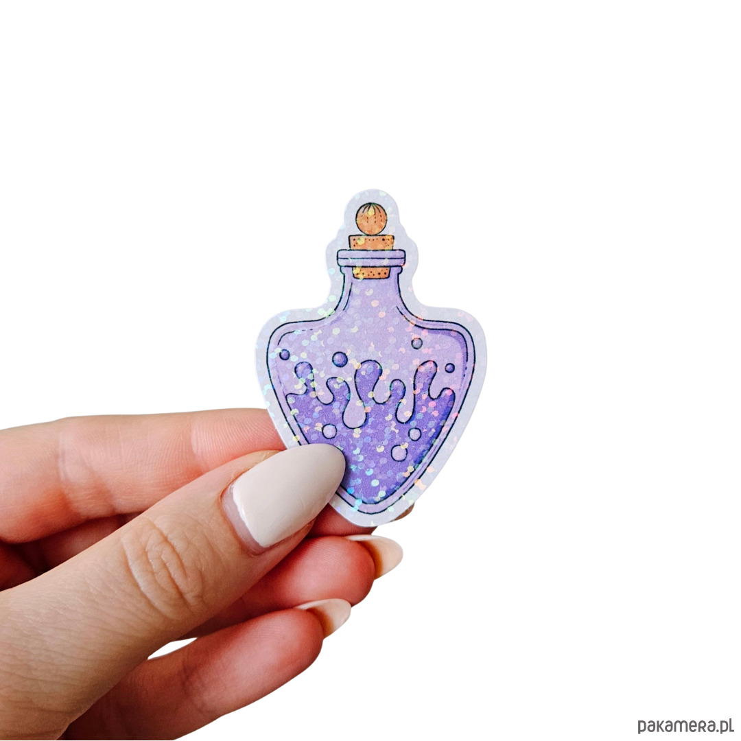 Wygląda jak napój szczęścia, tylko w wersji błyszczącej! Fioletowa buteleczka z korkiem i holograficznym brokatem, która będzie błyszczeć na Twoim laptopie, walizce czy telefonie. Dla wszystkich, którzy lubią mieć przy sobie odrobinę magii – nawet w kolejce do urzędu.